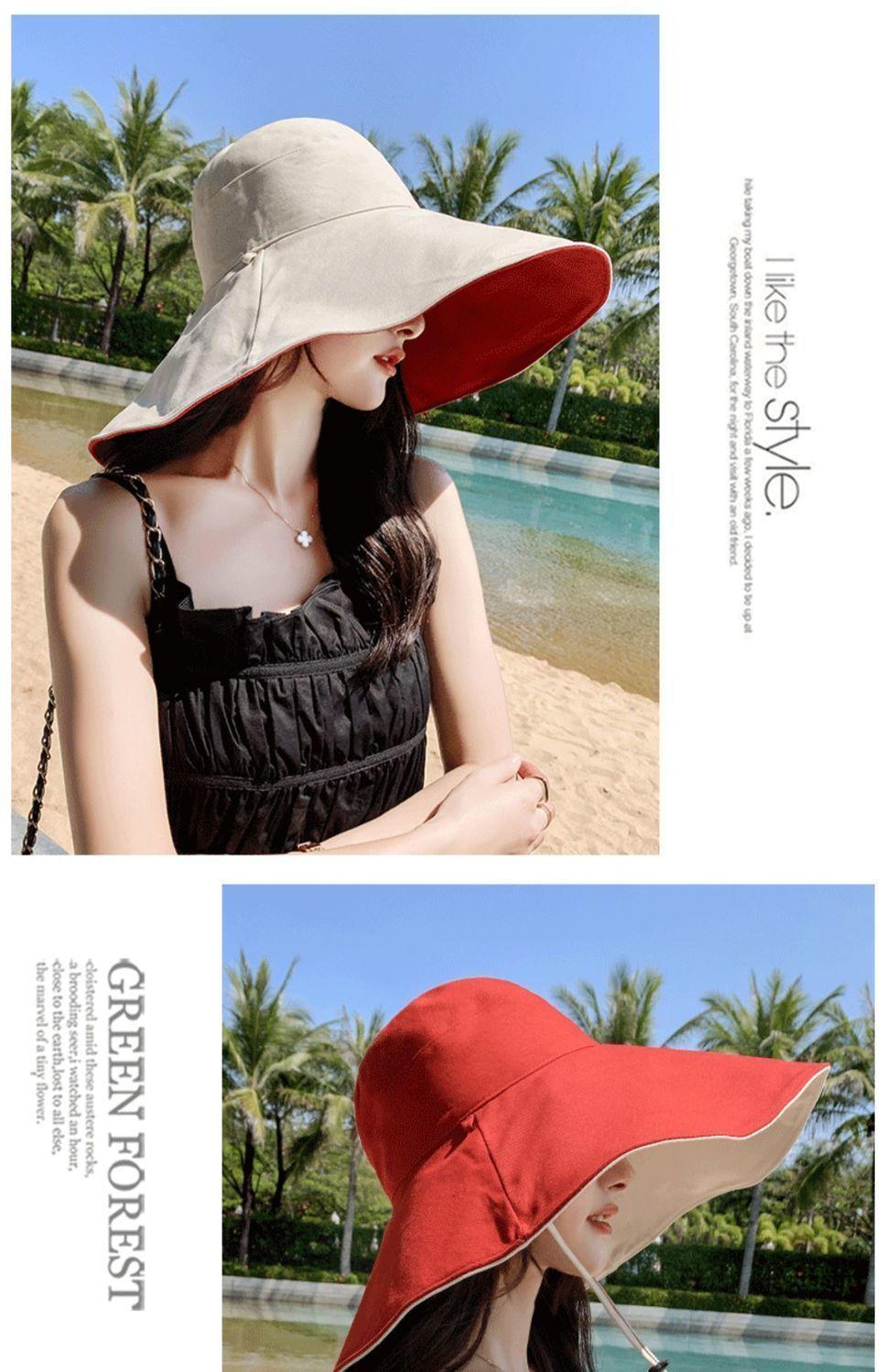 Sombrero de pescador para mujer, estilo coreano, de verano, de ala grande, de doble cara, combinable con todo, resistente a los rayos UV, ideal para la marea.