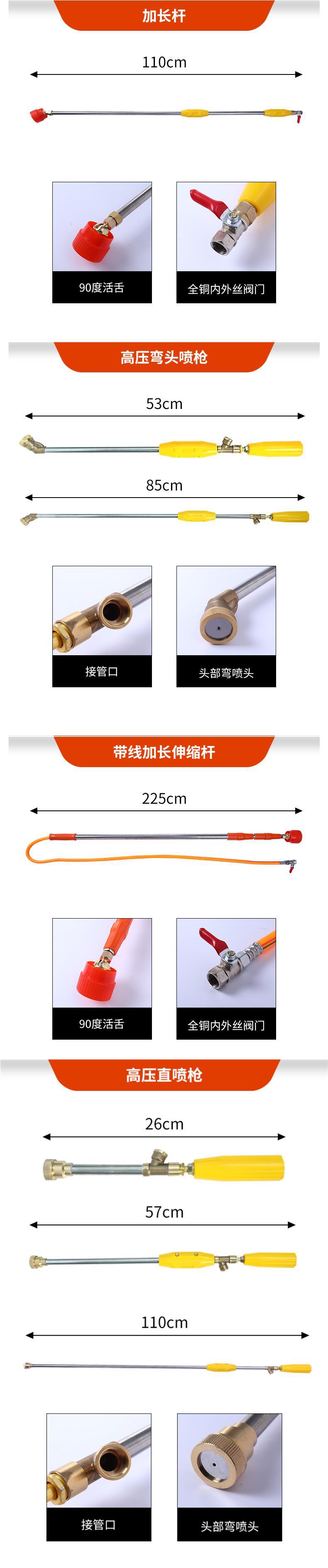 60 italian straight spray gun, 90 italian straight spray gun, 1m pole + five heads, 1m pole + straight four co...