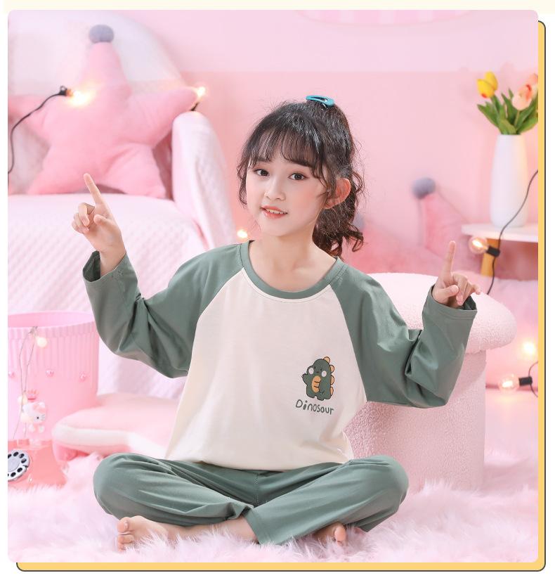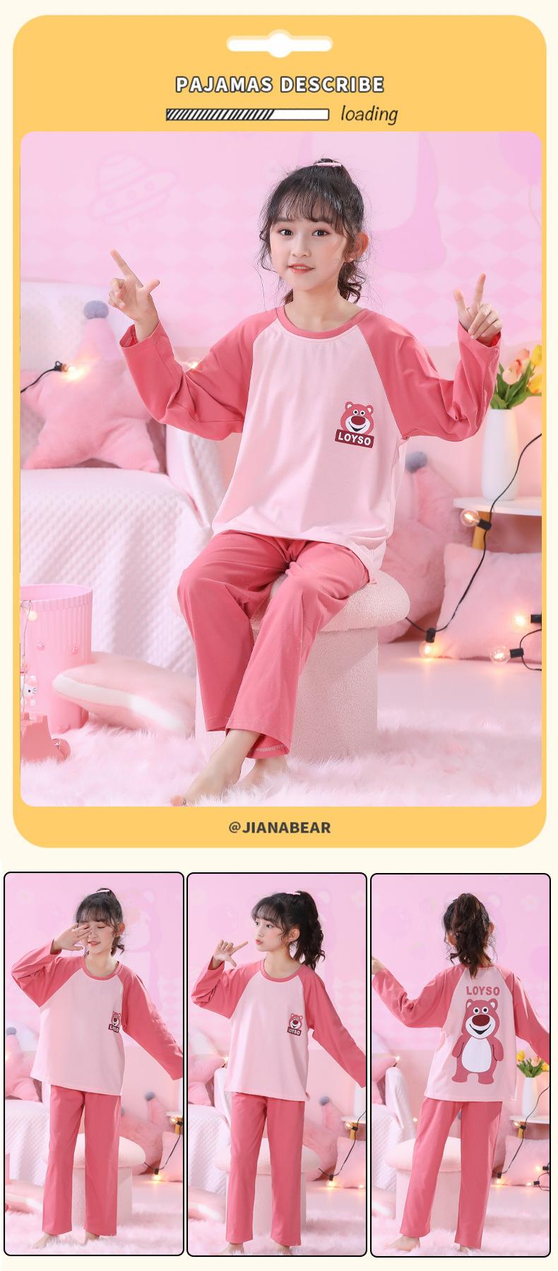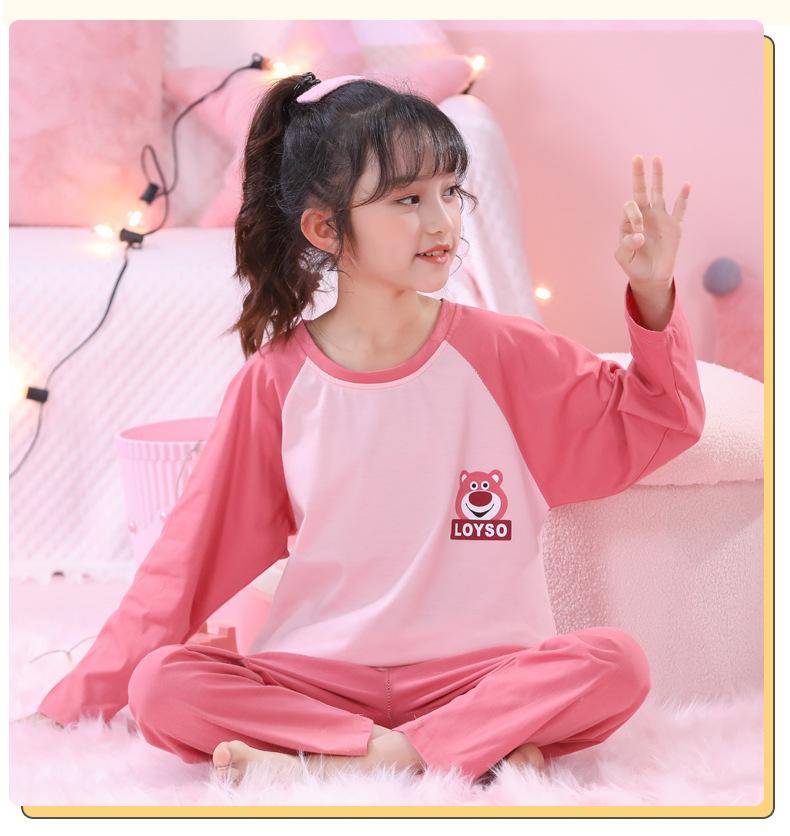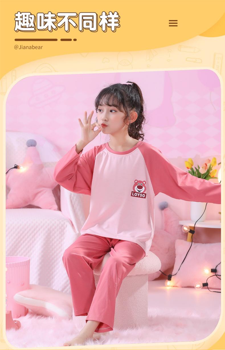 Primavera y Otoño 2023 Pijama Infantil para Niñas Traje de Manga Larga con Cuello Redondo Ropa de Casa Linda de Dibujos Animados para Niños Pequeños