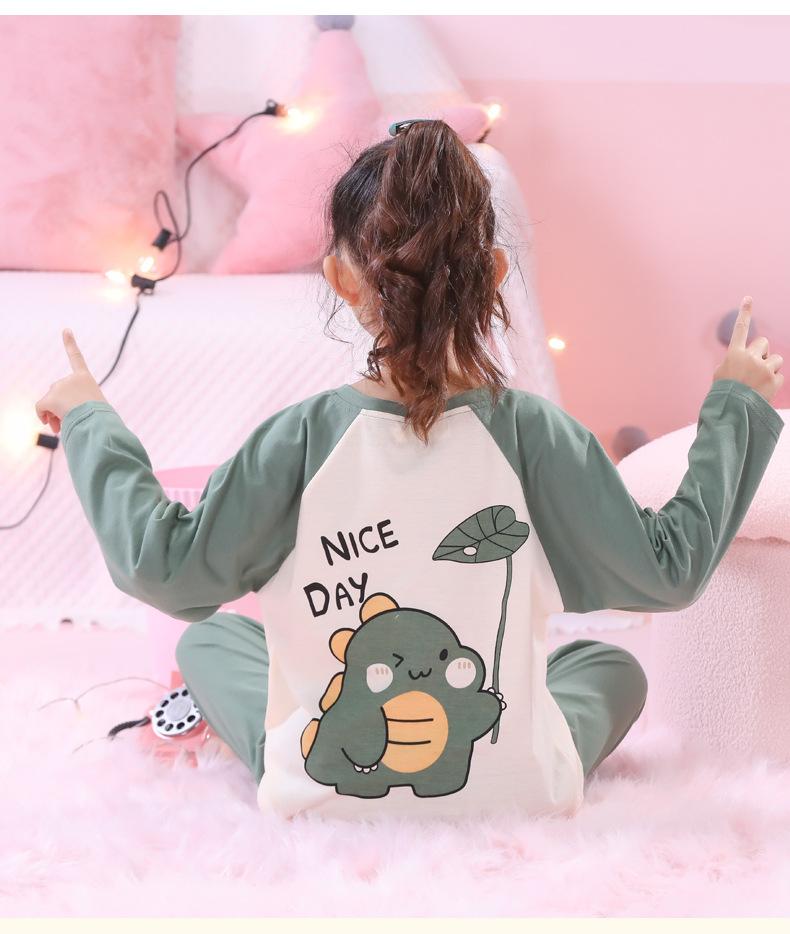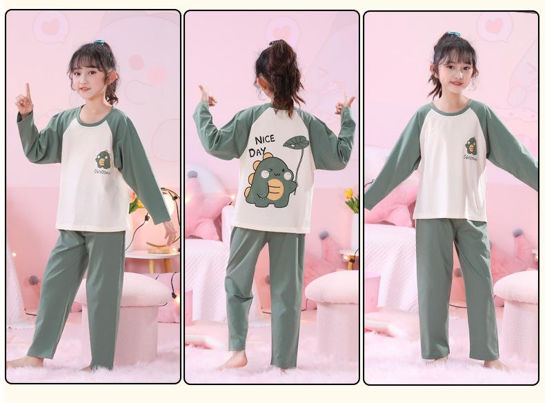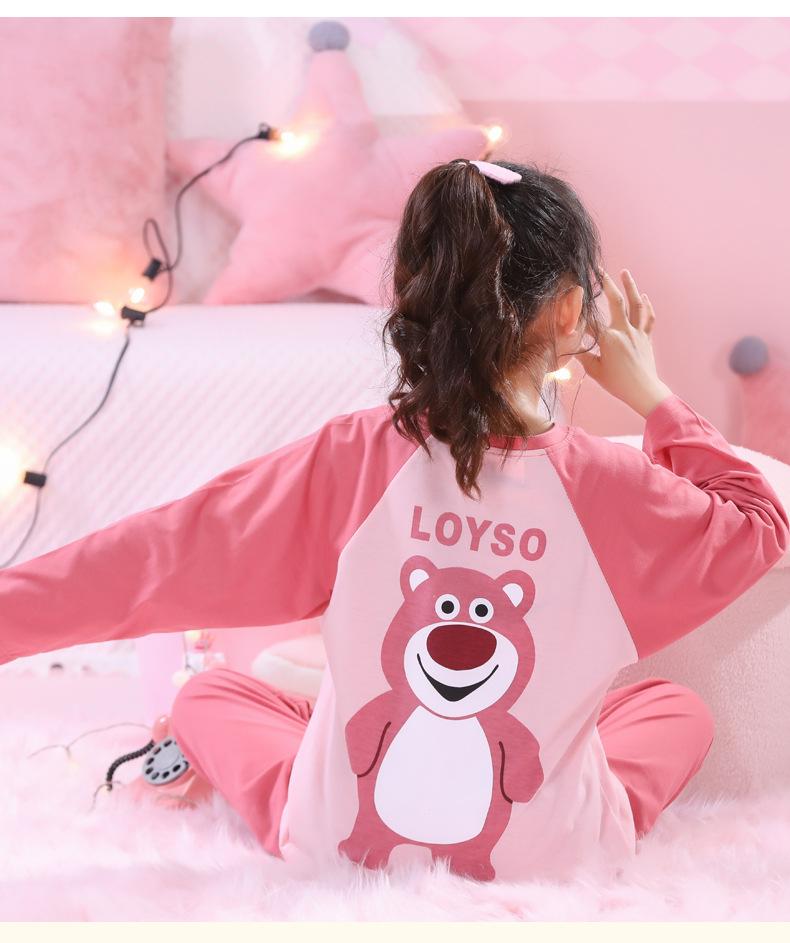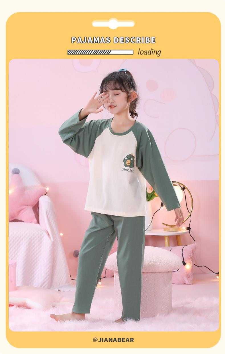 Primavera y Otoño 2023 Pijama Infantil para Niñas Traje de Manga Larga con Cuello Redondo Ropa de Casa Linda de Dibujos Animados para Niños Pequeños