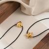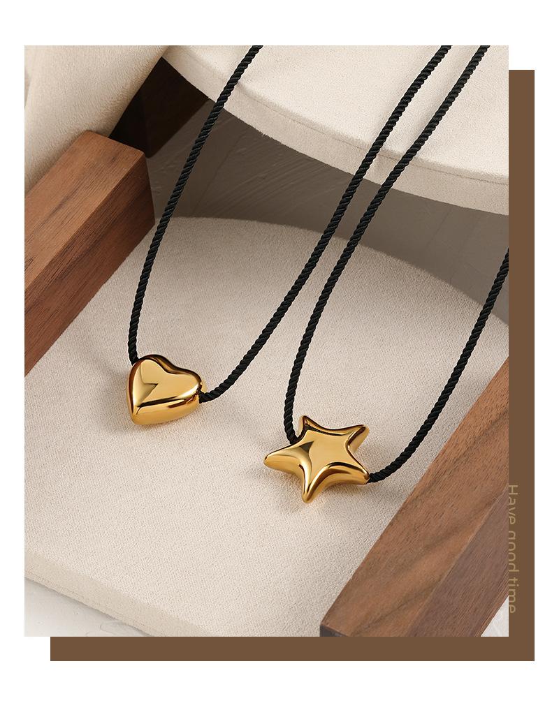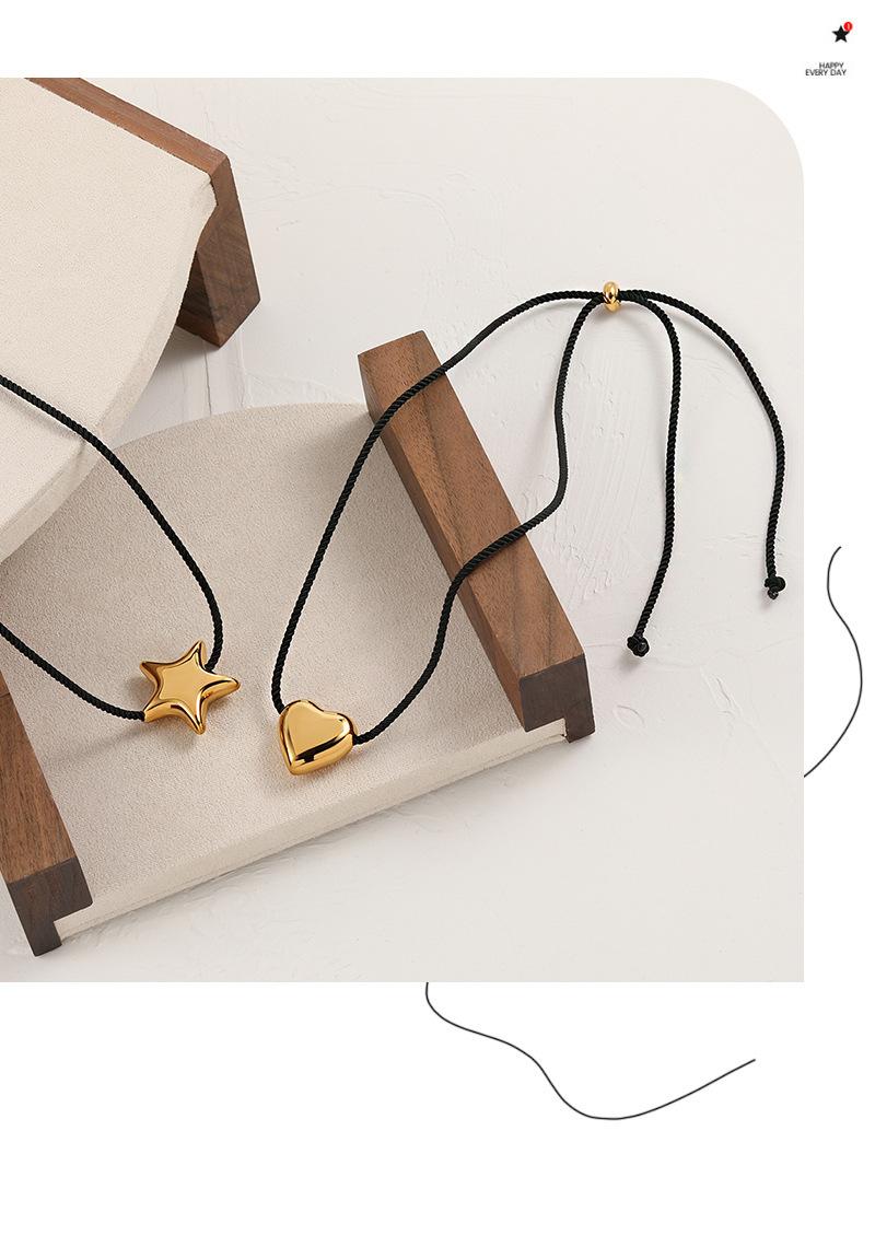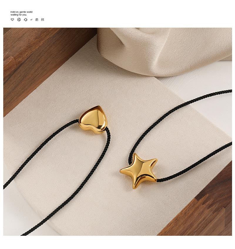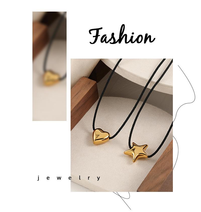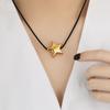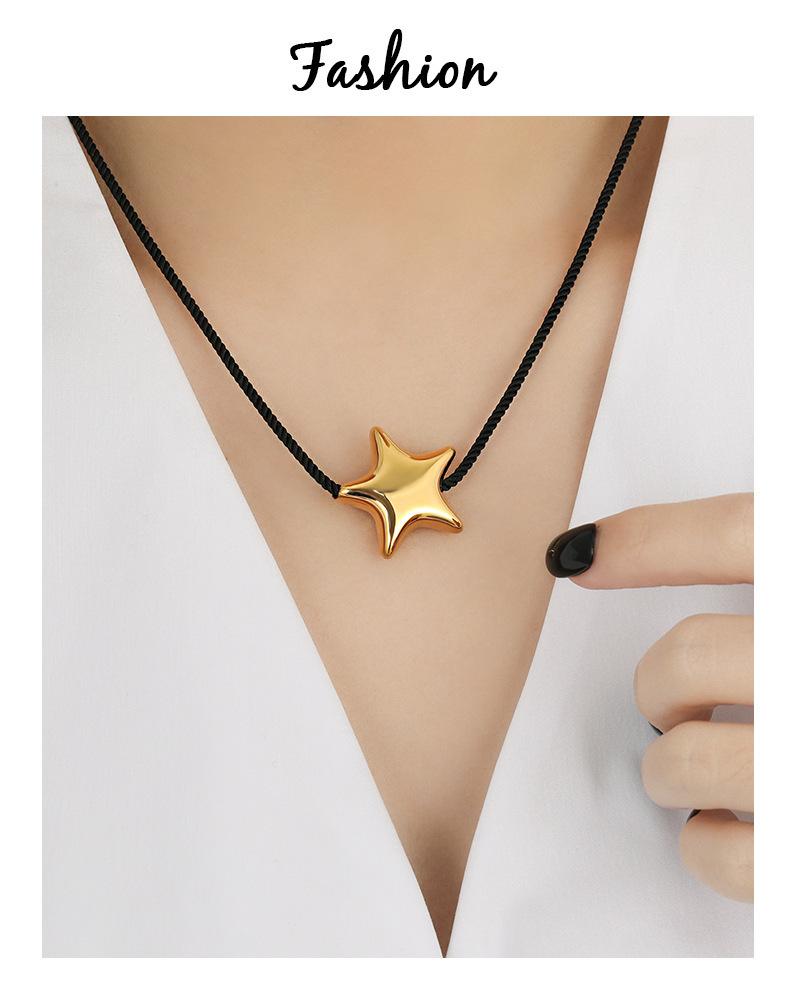 Collar de cuerda negra con forma de estrella de cinco puntas, estilo europeo y americano, con diseño de nicho, personalizado, chapado en oro, de acero y titanio.