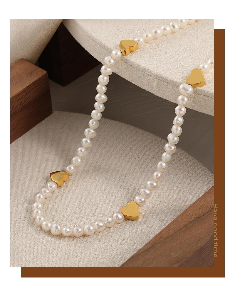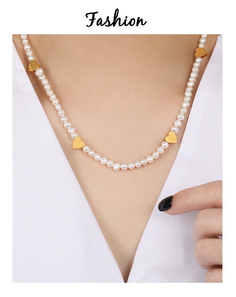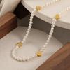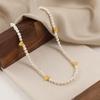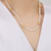 Collar de perlas de lujo ligero para mujer, estilo transfronterizo europeo y americano, personalizado, de acero de titanio y chapado en oro, cadena