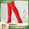 Botas de baile por encima de la rodilla, zapatos sexis con punta abierta, botas profesionales para espectáculos de pole dance, botas elásticas para mujer, botas de cuero con pintura adelgazante