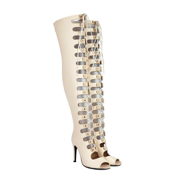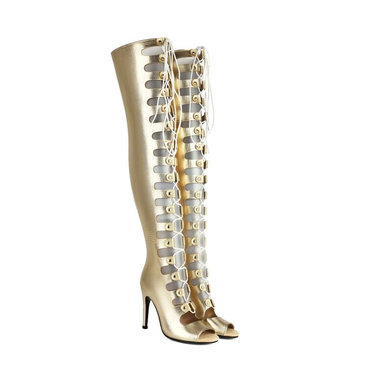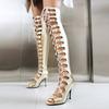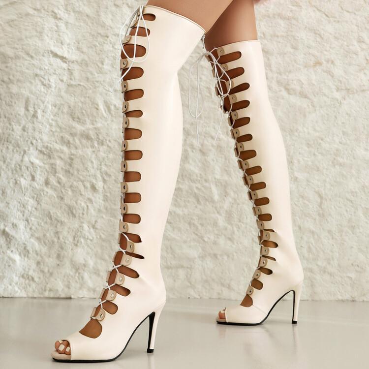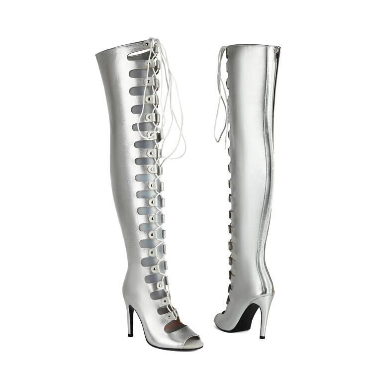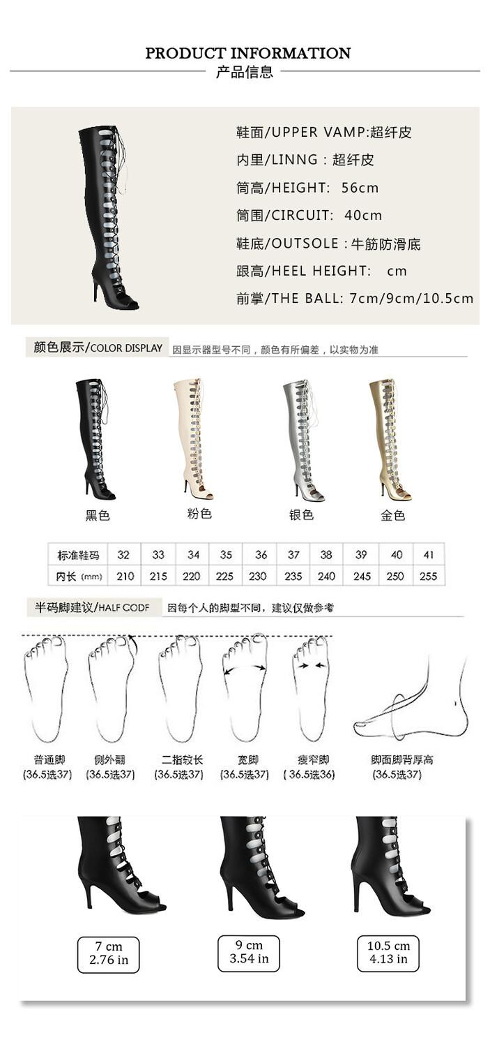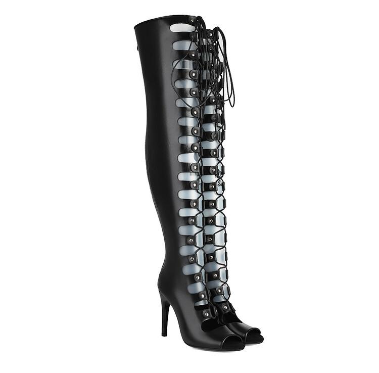 Botas nuevas 2024 por encima de la rodilla sandalias negras sexys peep toe comercio exterior transfronterizo Tacón Alto con cordones botas de baile caladas