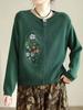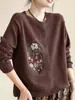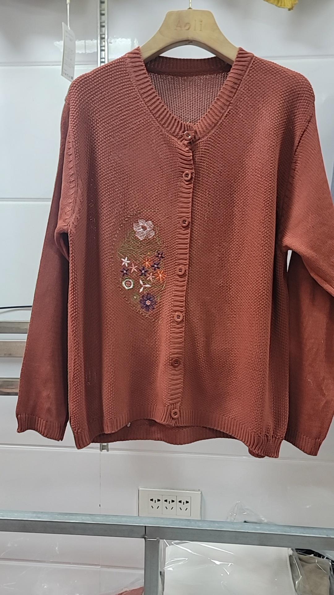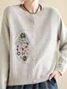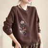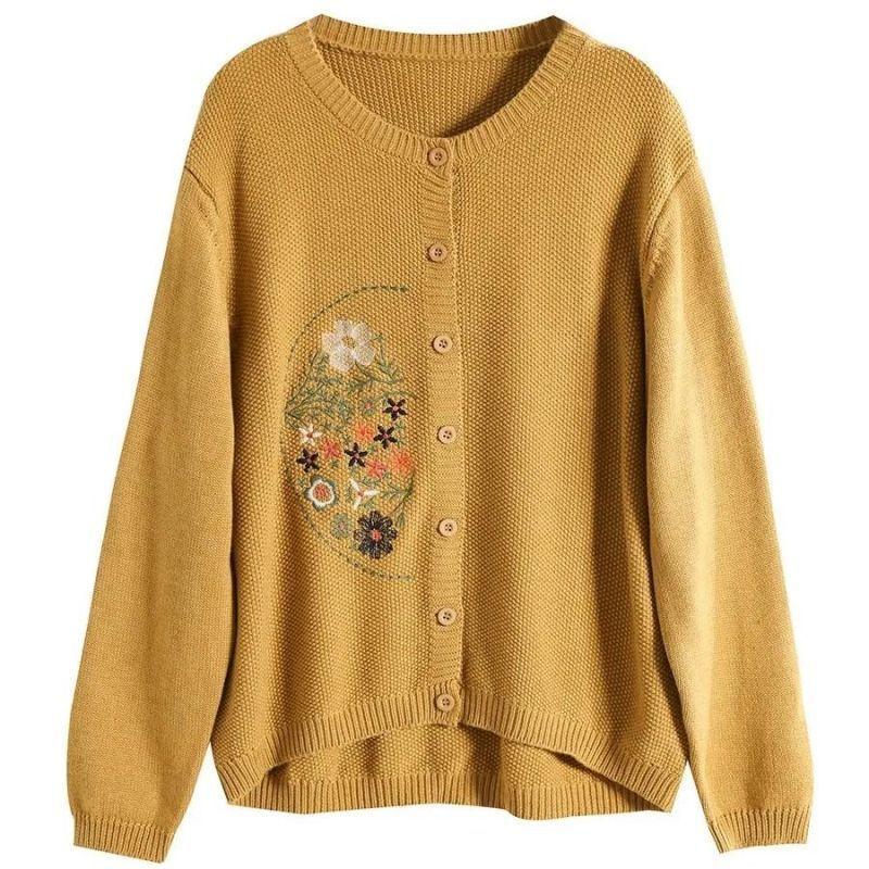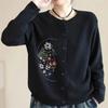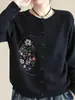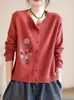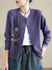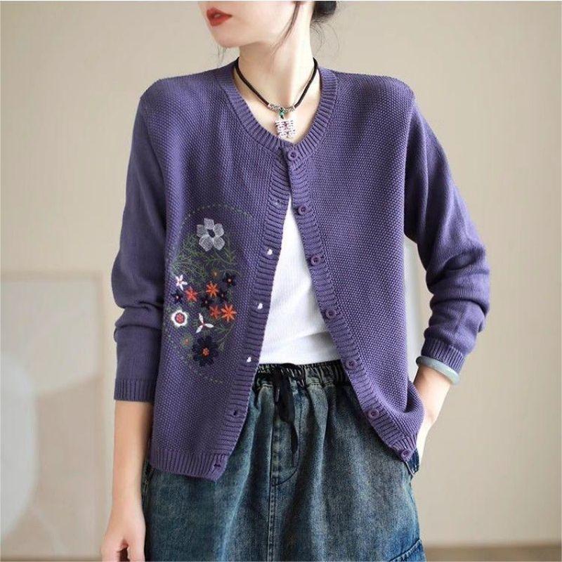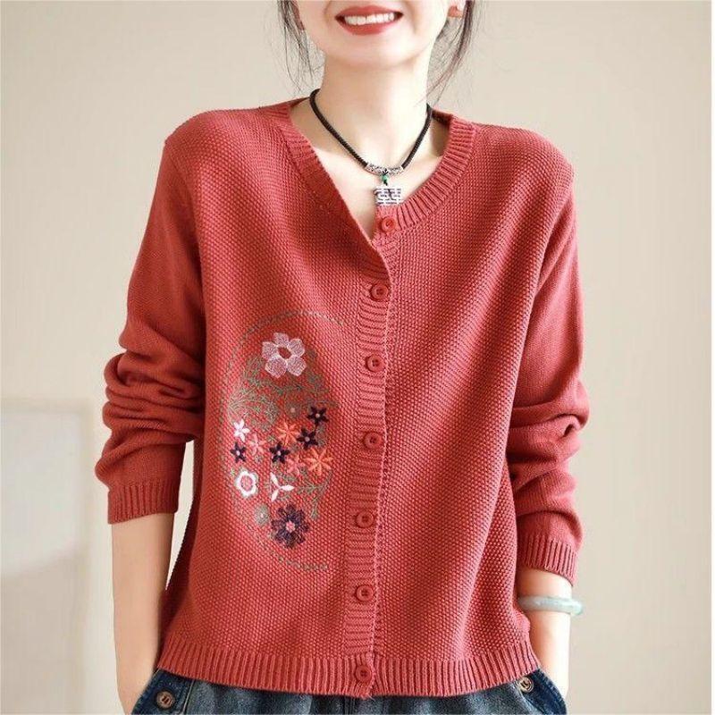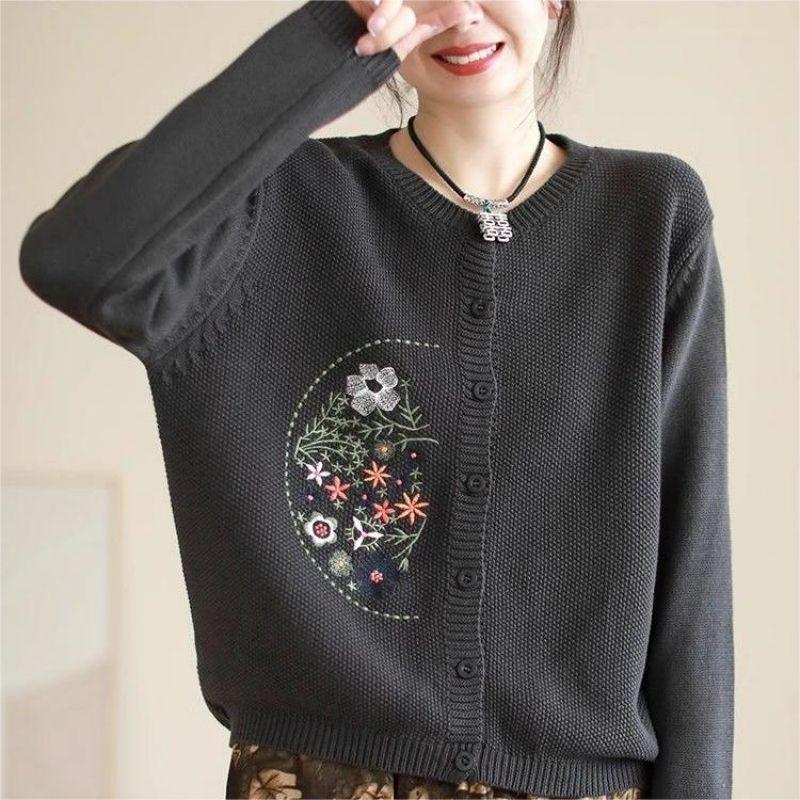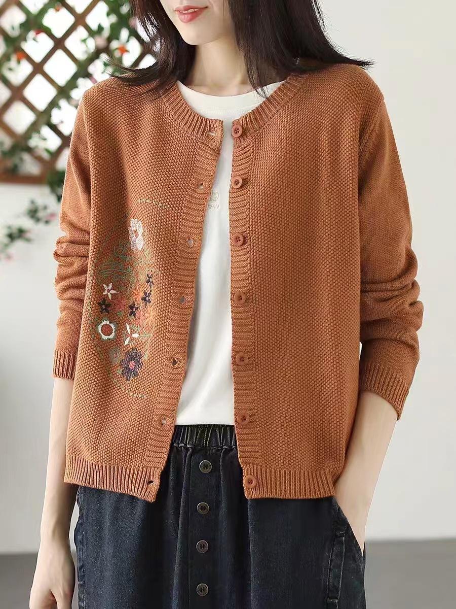 Suéter tipo cárdigan de punto con cuello redondo y bordado fino de primavera, estilo retro que combina con todo.