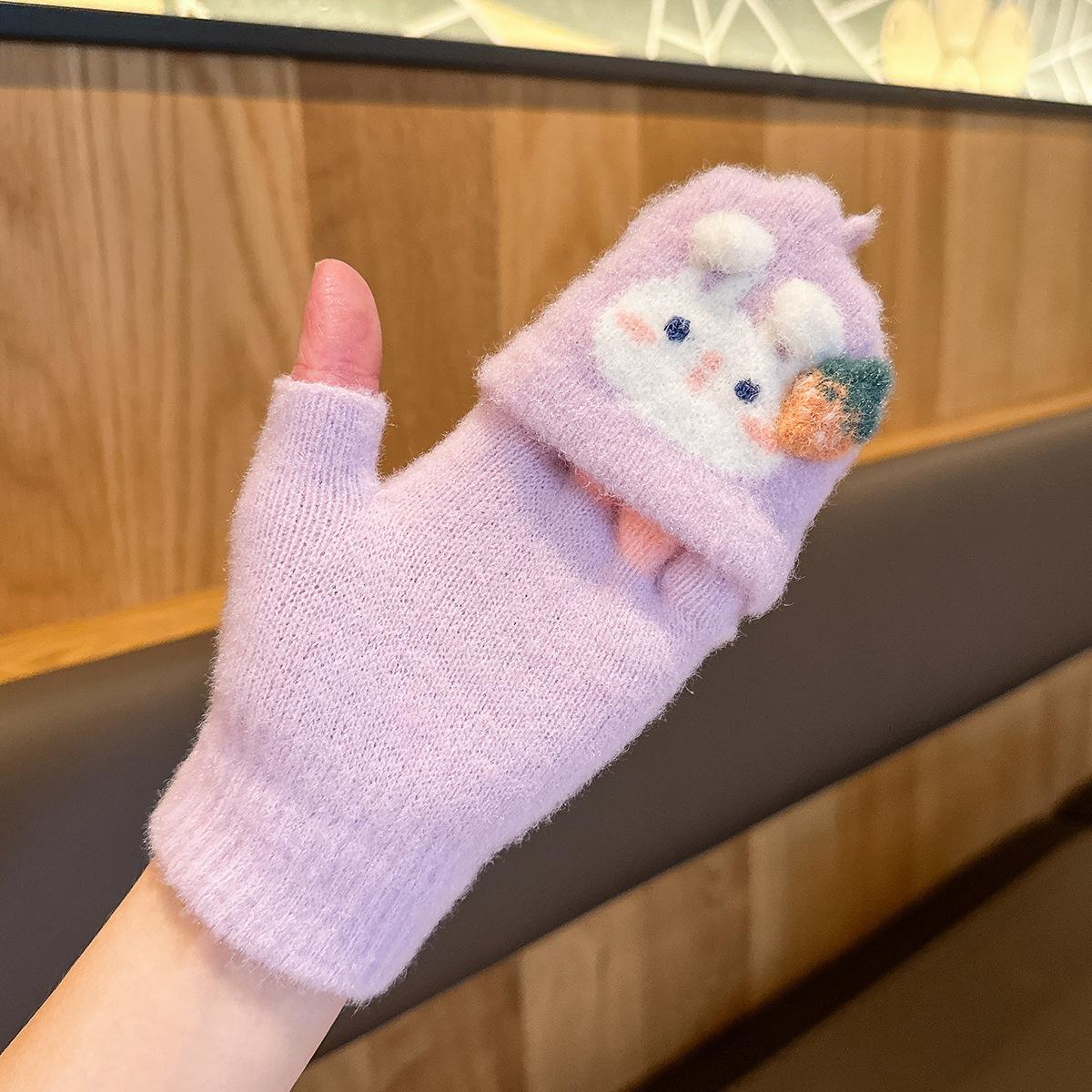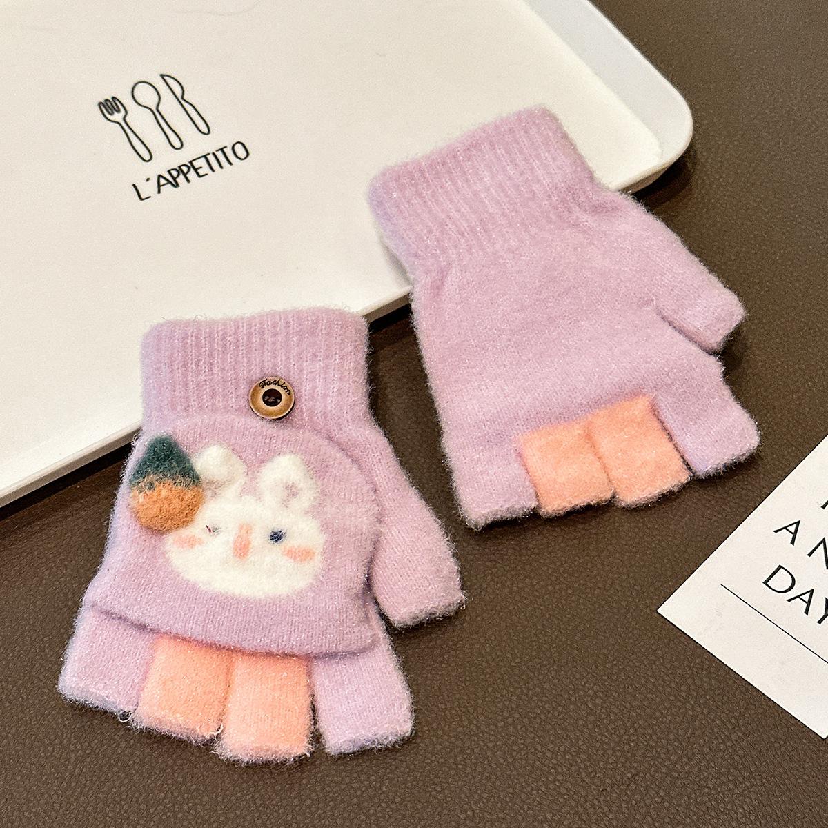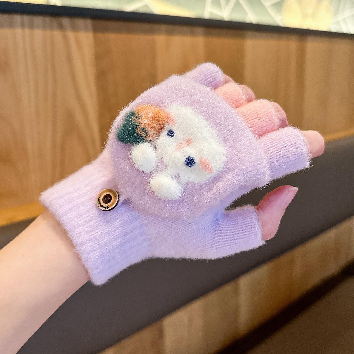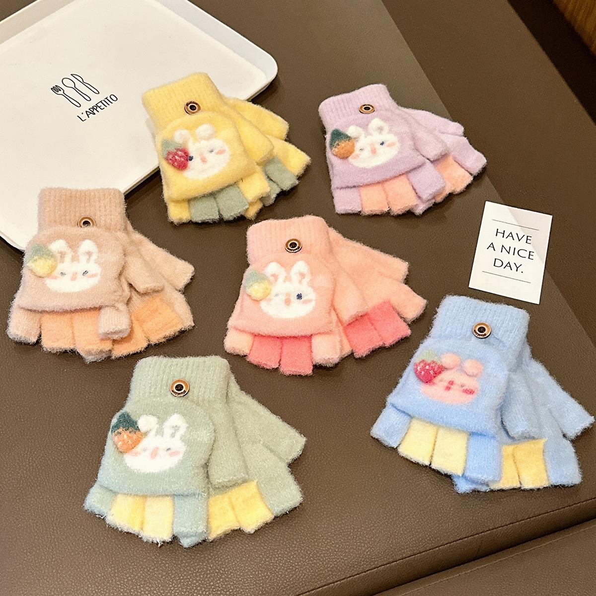 Guantes de invierno para niñas, resistentes al frío, bonitos, cálidos, gruesos, de cinco dedos, con tapa para escribir y medio dedo.