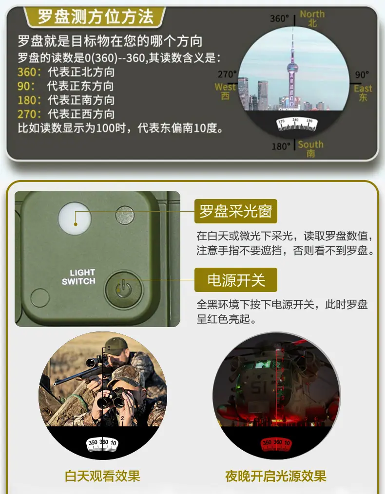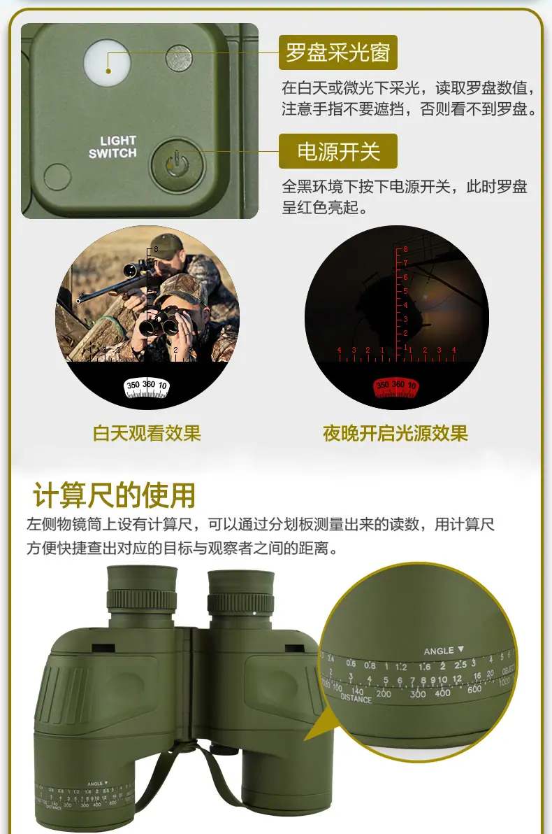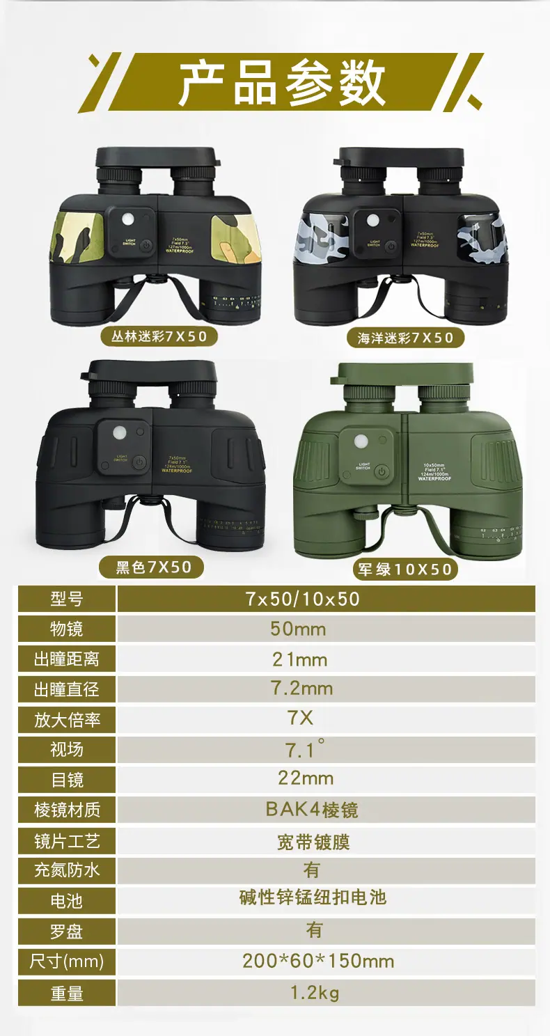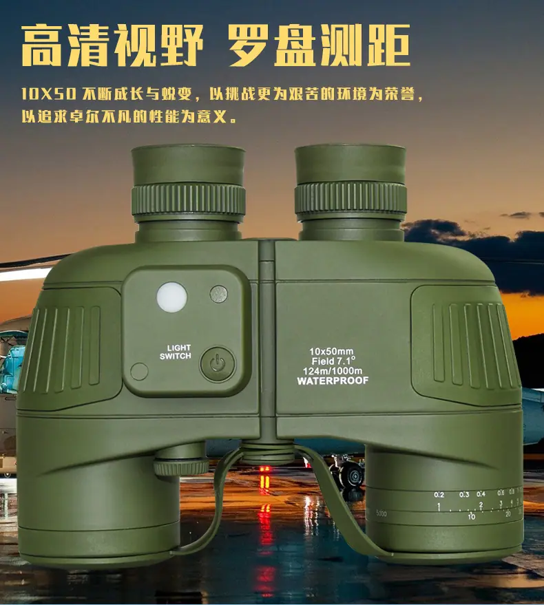 Binoculares militares transfronterizos, resistentes al agua, con brújula, telescopio HD de alta potencia, gafas de navegación y telémetro.