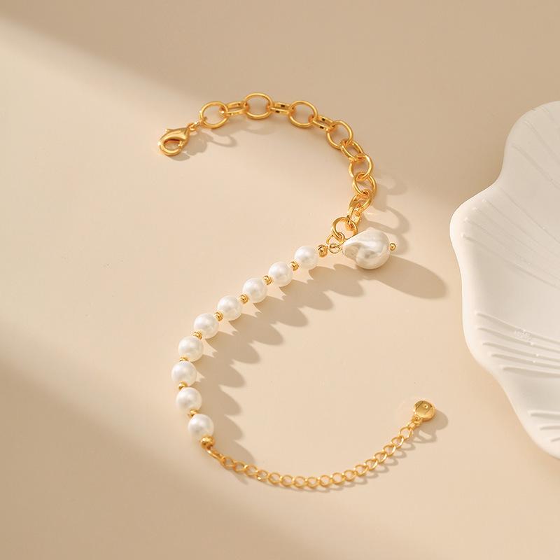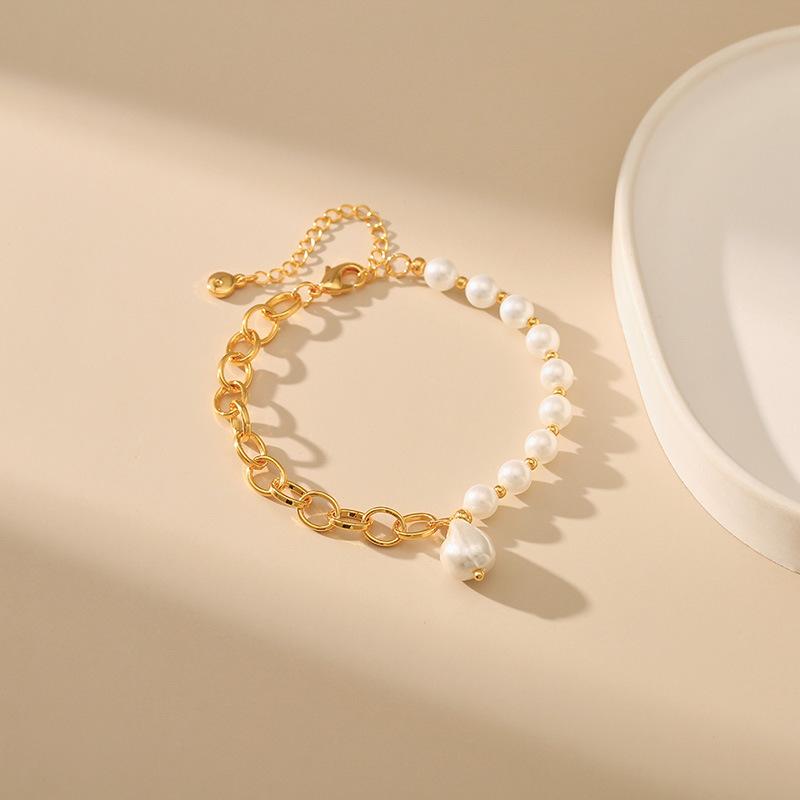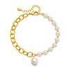 Pulsera de Perlas Material de Cuentas de Concha Costura Cadena en Forma de O Diseño Creativo Sentido Pulsera de Personalidad Chapada en Oro Real de 18K No se Desvanece