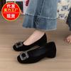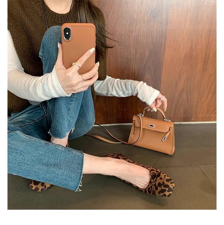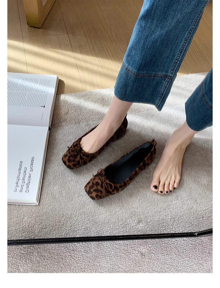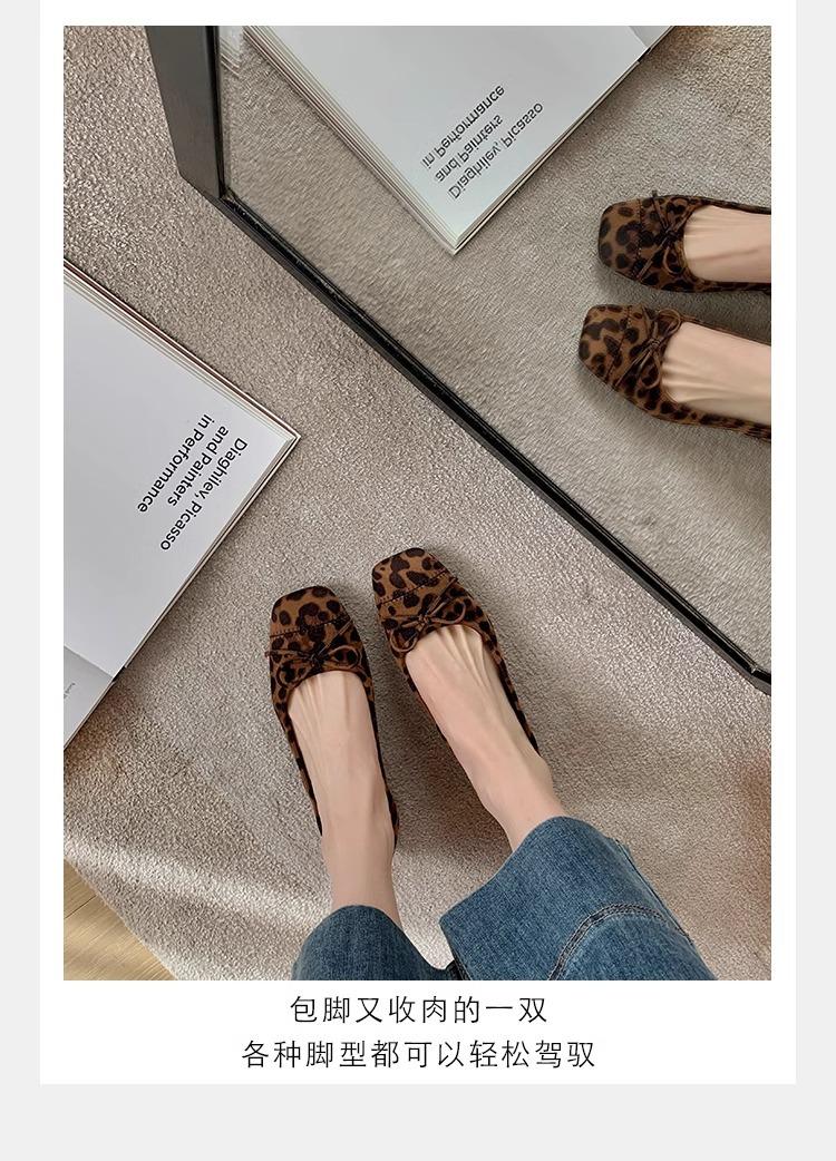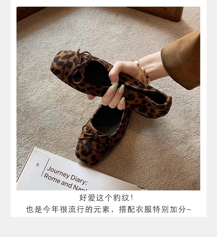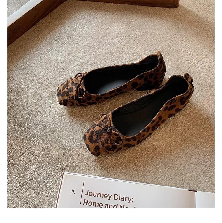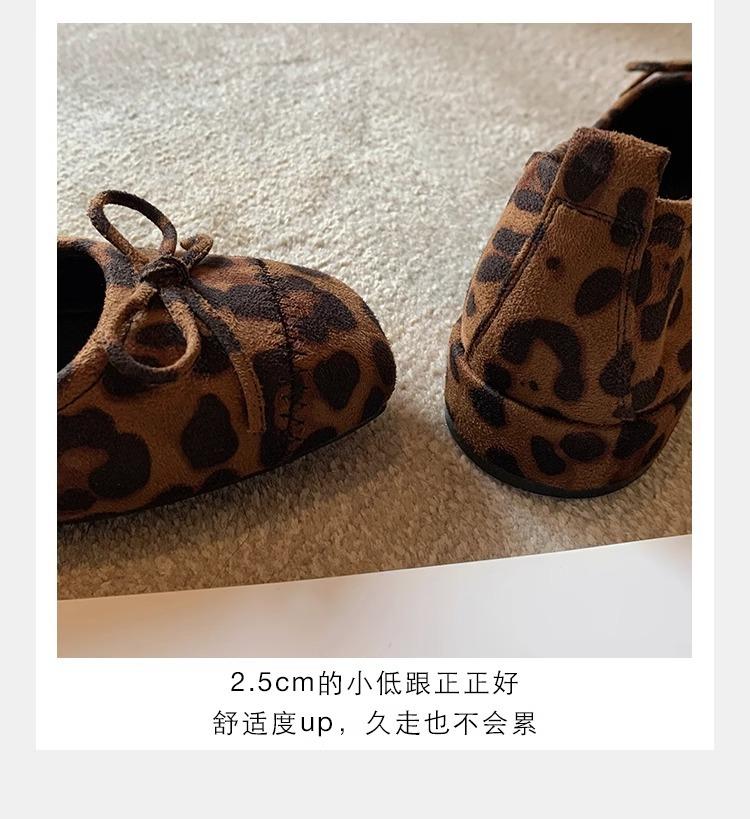 Grape Mom Zapatos de Trabajo para Mujer con Lazo Otoño 2025 Nuevo Estampado de Leopardo Tacón Bajo Zapatos Cómodos de Tacón Grueso Suela Suave para Mujer