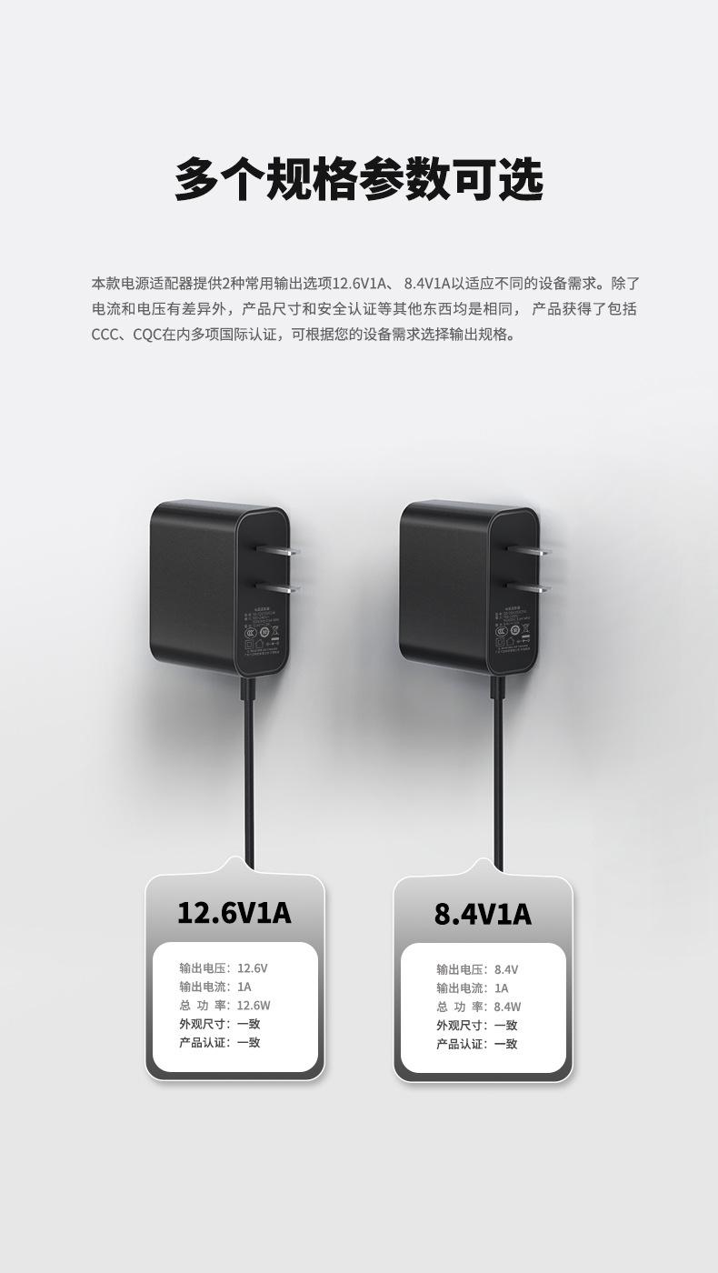 8.4V1A/12.6V1A Cargador de Luz de Giro Estándar Chino Certificado 3C Eliminador de Ácaros Lámpara de Minero Batería de Litio Adaptador de Corriente