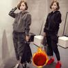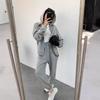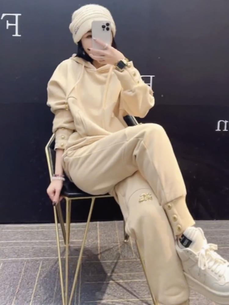 Traje deportivo de ocio de color sólido de manga larga para mujer otoño e invierno 2022 nueva moda jersey con capucha y cordón conjunto de dos piezas