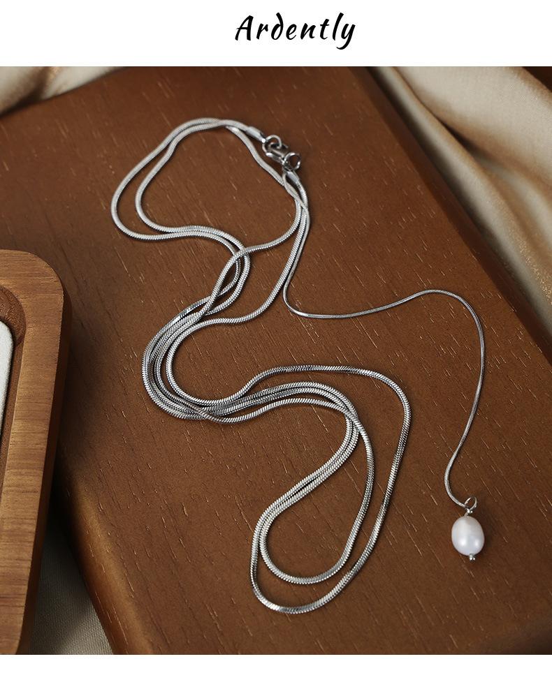 Francés Nuevo estilo nicho diseño simple Alto sentido colgante largo de perlas apilable cadena para suéter temperamento joyería para mujeres