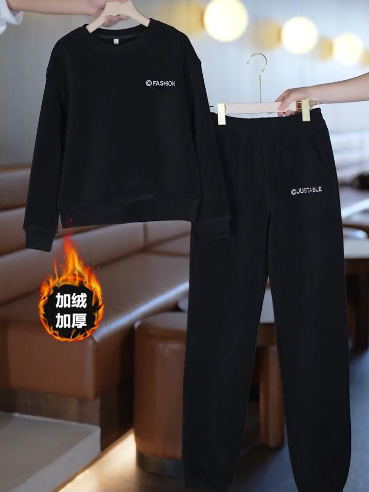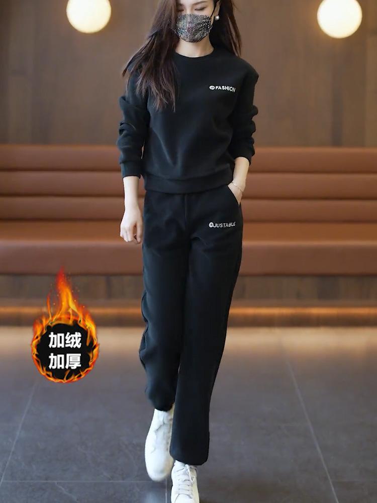 Traje Deportivo Casual de Moda para Mujer Otoño e Invierno 2022 Nuevo Sudadera de Moda Elegante Gruesa con Forro Polar de Dos Piezas