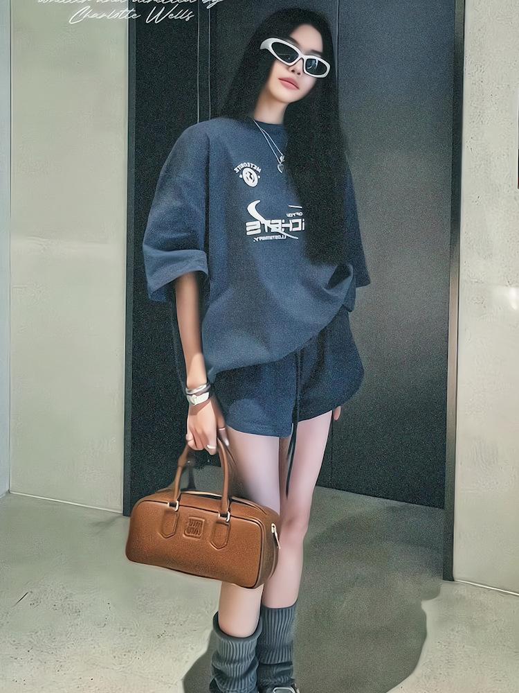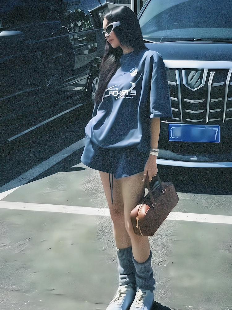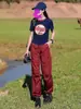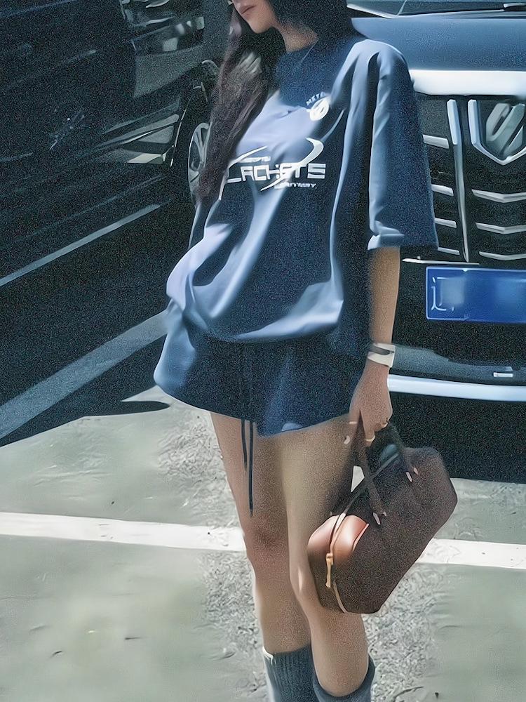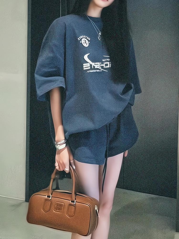 Traje casual de estilo deportivo de moda Primavera y Verano Un conjunto de jersey holgado de cuello redondo estampado de media manga Dos piezas Ropa de mujer