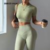 Conjunto de Ropa de Yoga Fitness de Alta Elasticidad Sin Costuras Transfronterizo Europeo y Americano Ropa de Yoga para Mujer Chaleco Deportivo Pantalones de Yoga Glúteos de Melocotón