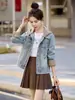 Nuevo Estilo Otoño 2025, Moderno, Sencillo, Capaz, Versátil y a la Moda Chaqueta de Mezclilla con Capucha para Personas Pequeñas