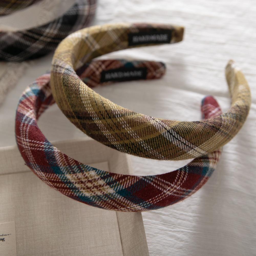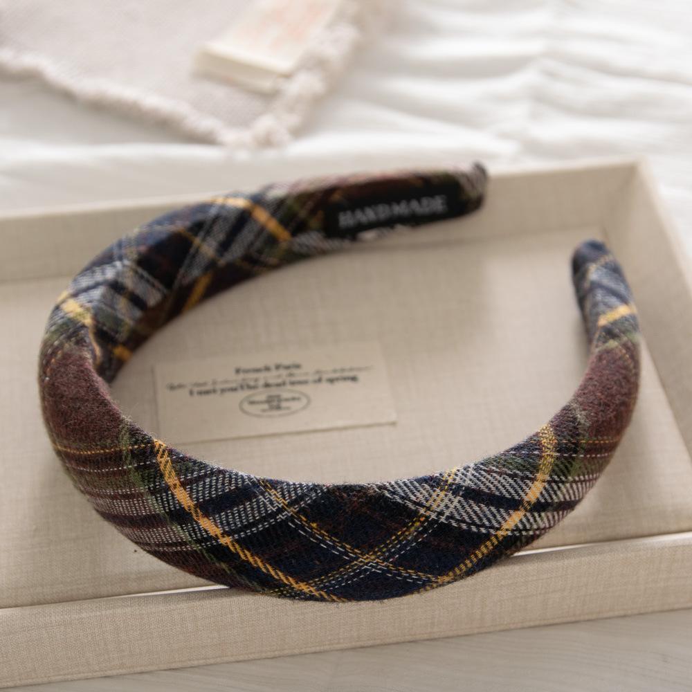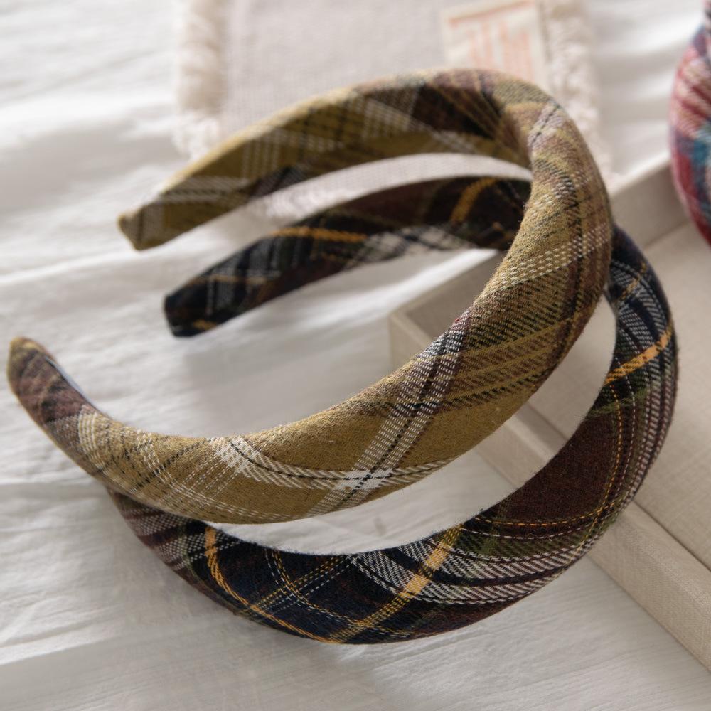 Diadema de ala ancha de estilo universitario de principios de otoño con parte superior craneal alta, estilo retro para salir, diadema de tela que combina con todo, accesorios para el cabello