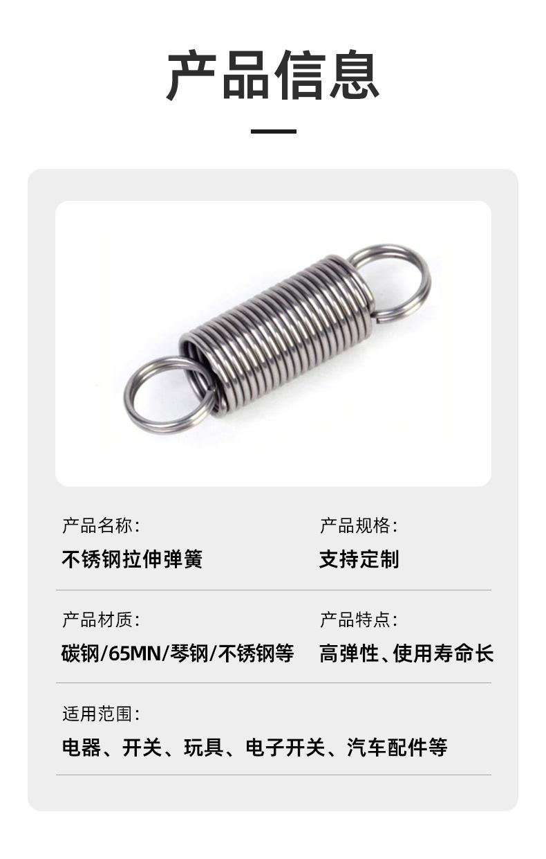 Resorte de Tracción de Acero Inoxidable 304 Personalizado por el Fabricante con Gancho Acero Inoxidable Juguete Resorte Fuerte Resorte de Tracción