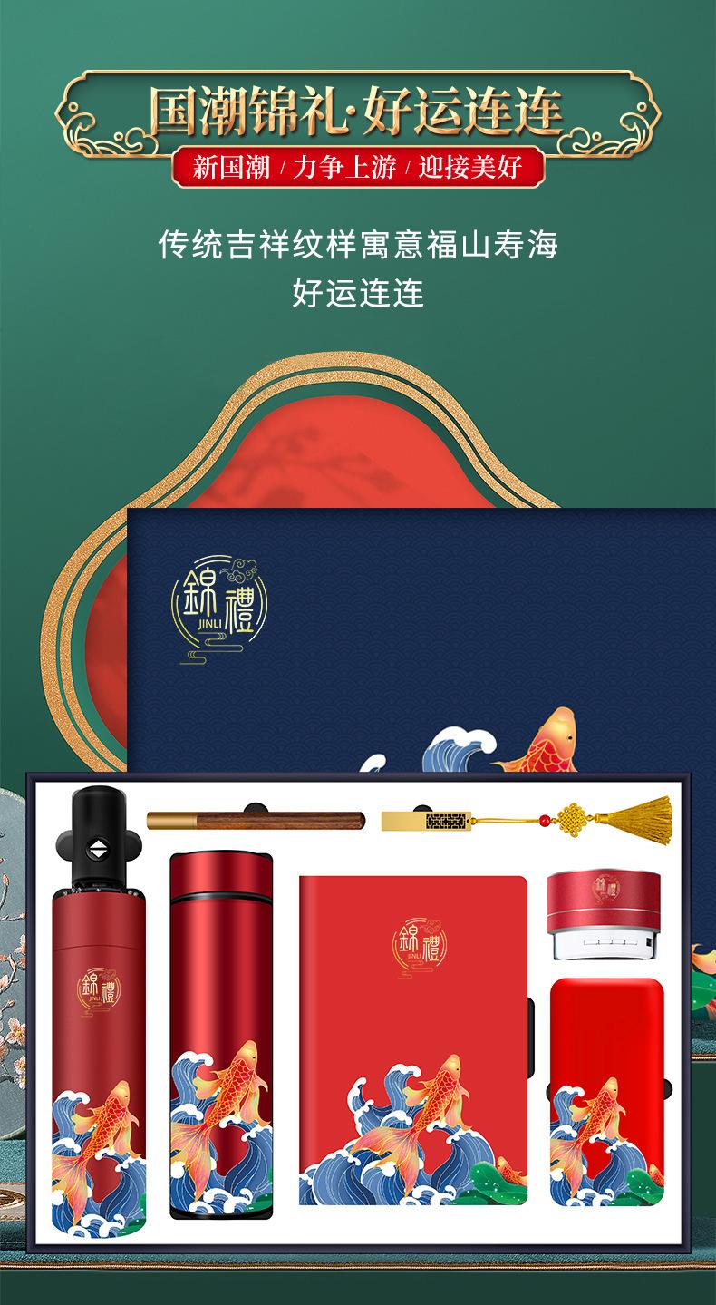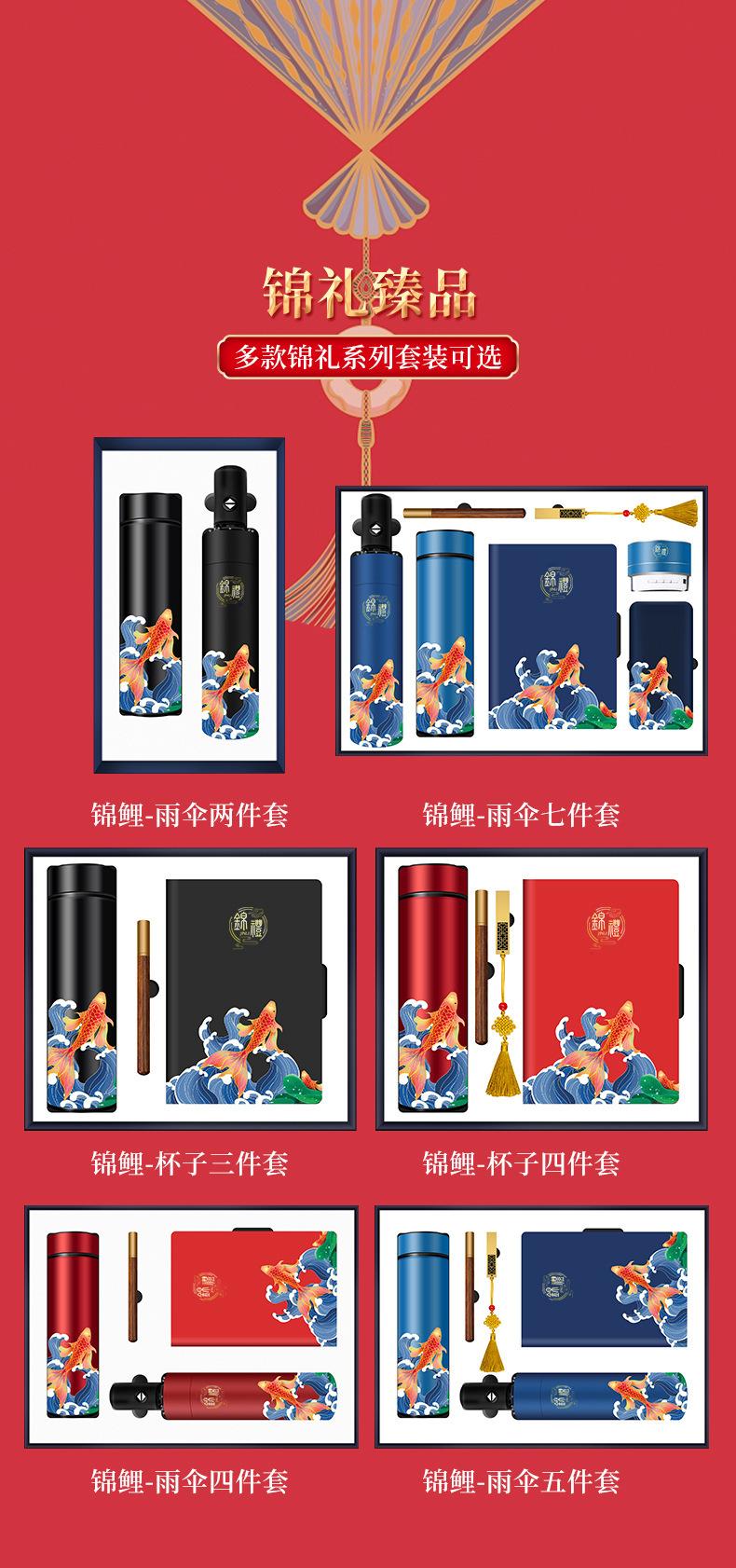Koi special edition temperature control Cup Koi wooden pen umbrella hand warmer window flower U disk six-piece set red