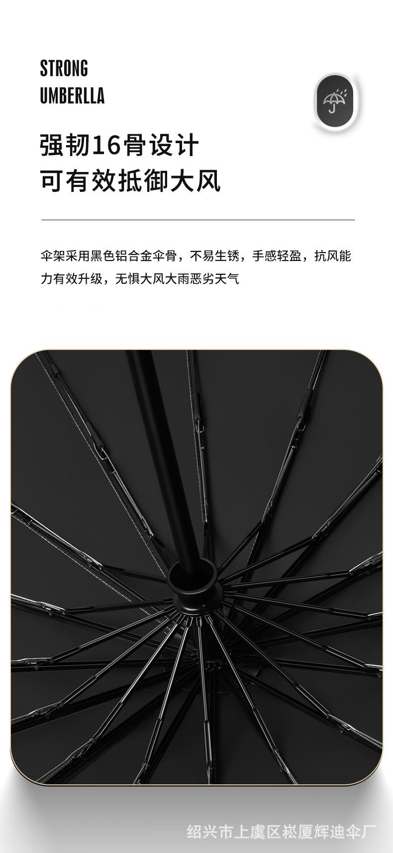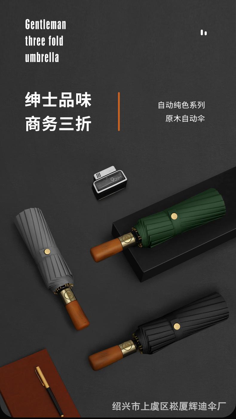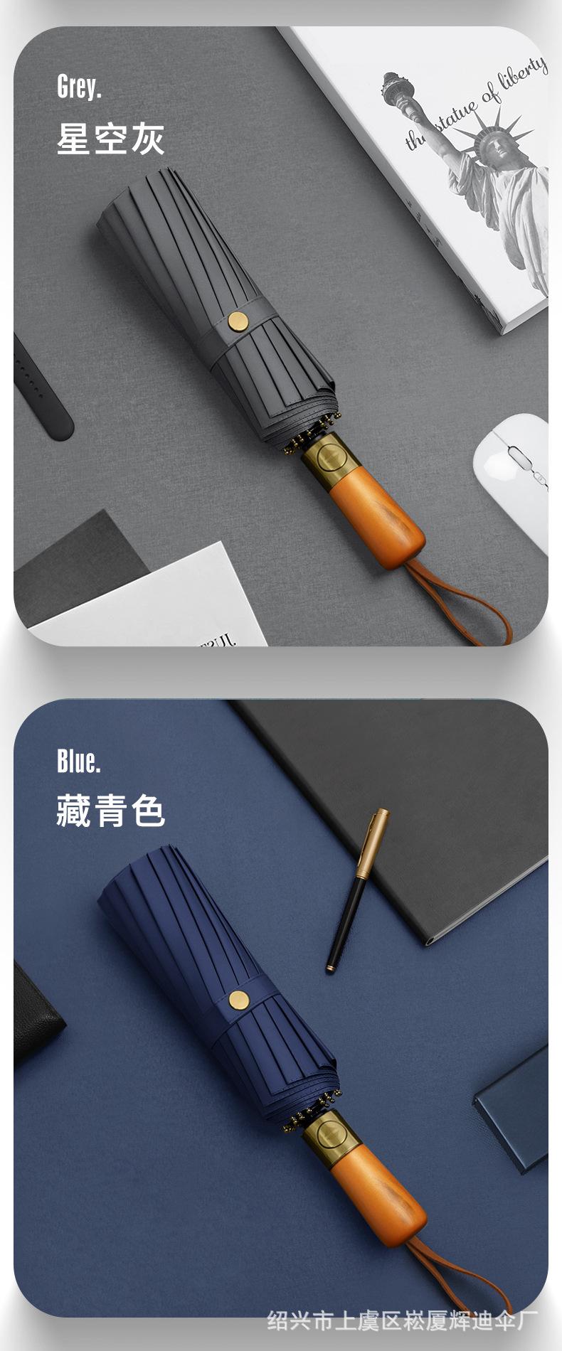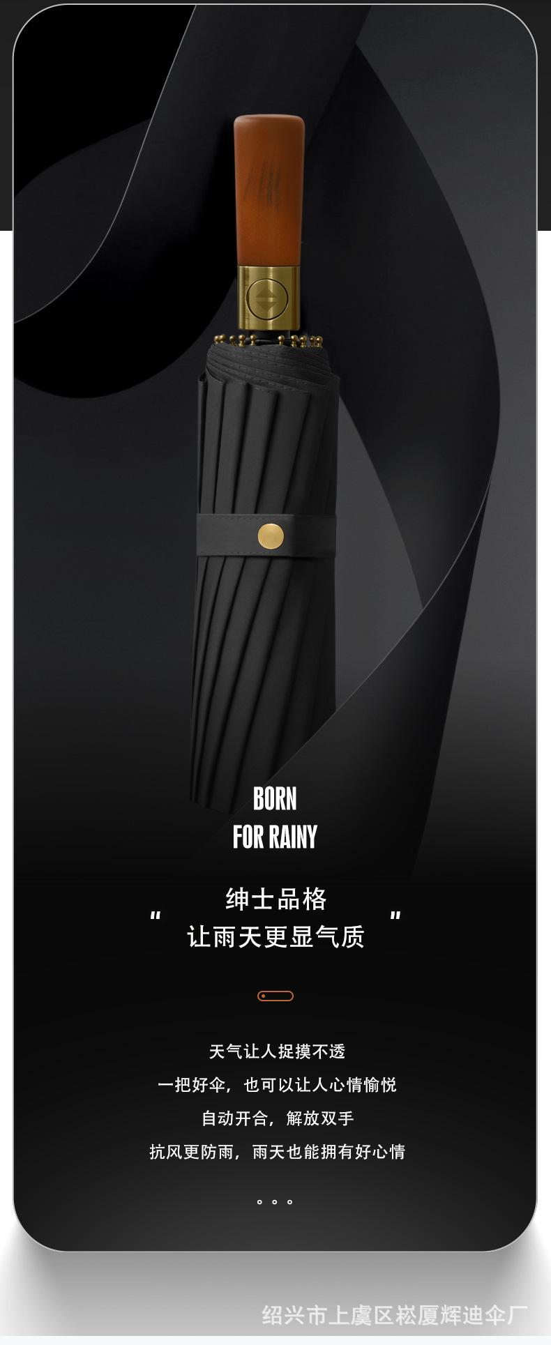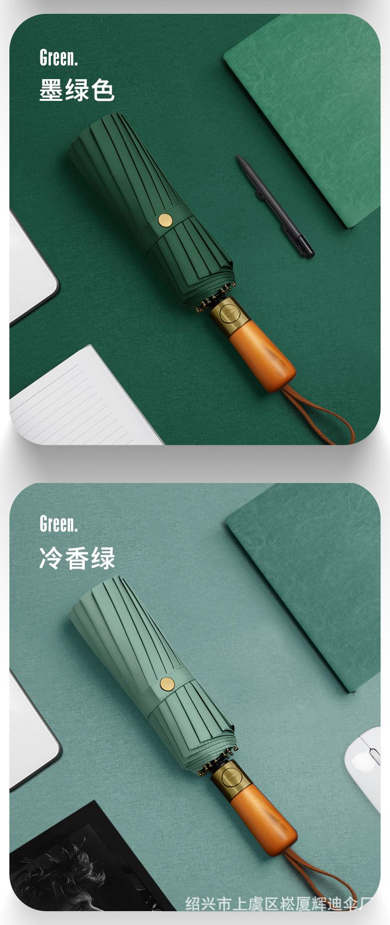 Paraguas de 16 hojas con mango de madera maciza, plegable, automático, de vinilo, resistente a los rayos UV, con logotipo publicitario, ideal como regalo de negocios de alta gama.