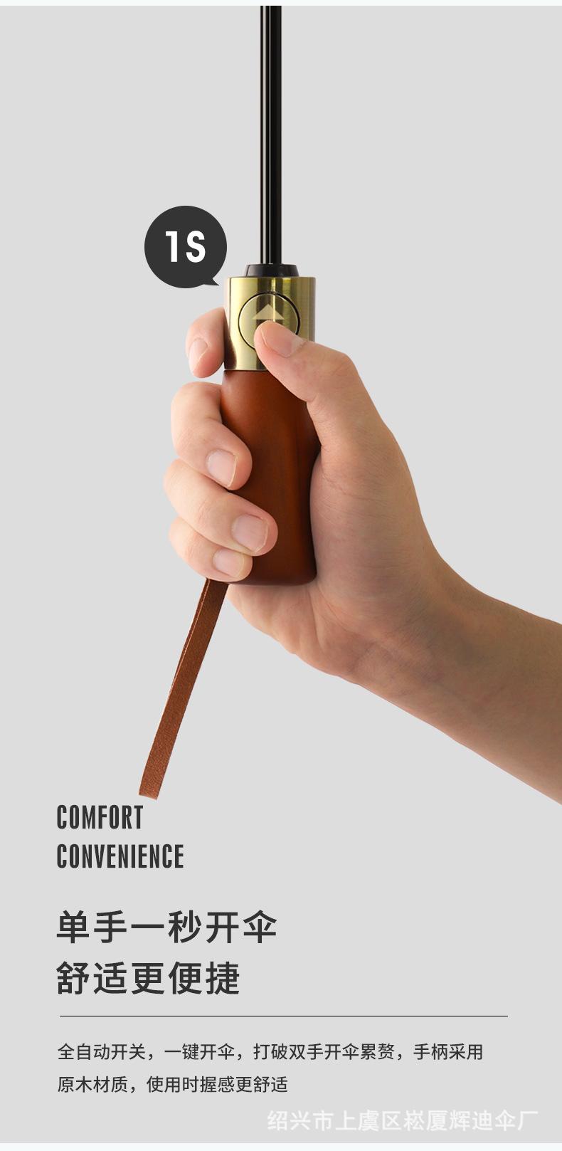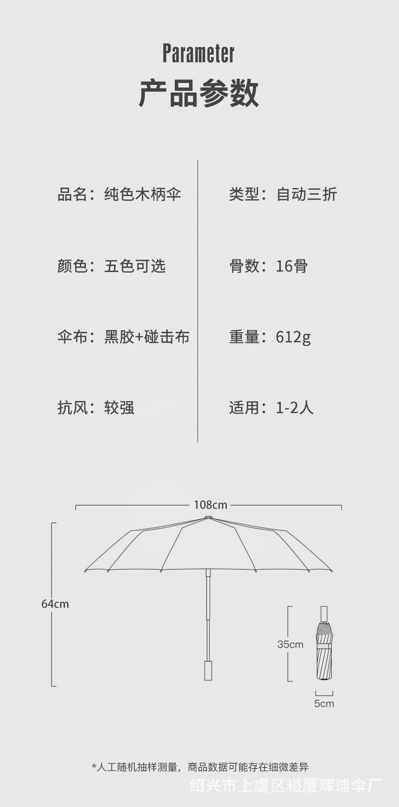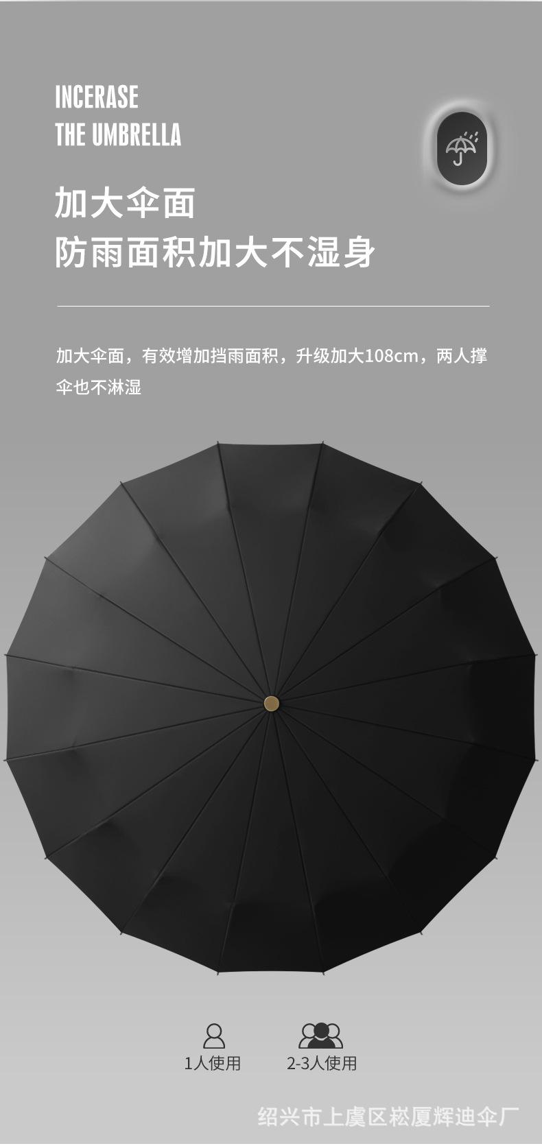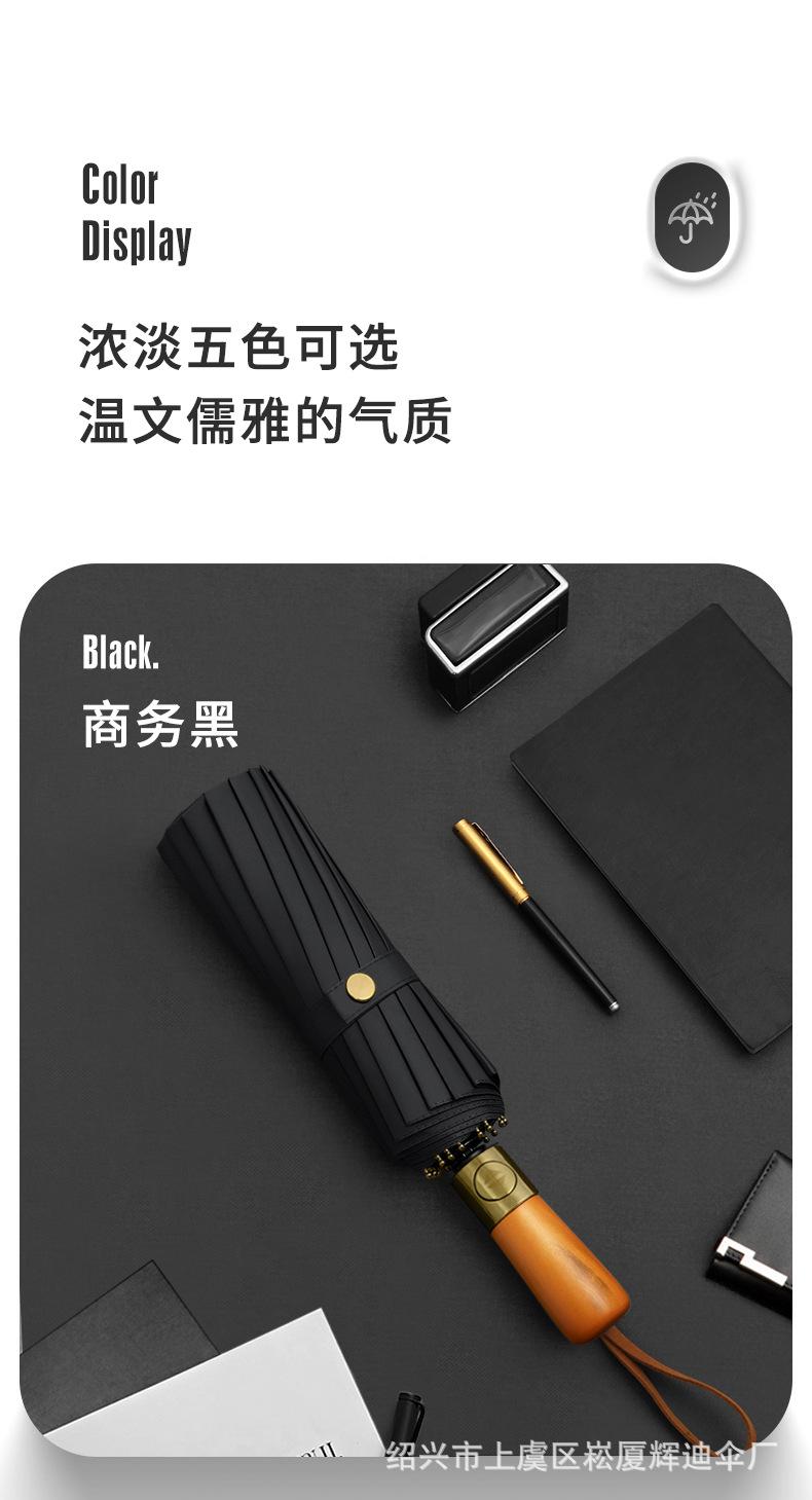 Paraguas de 16 hojas con mango de madera maciza, plegable, automático, de vinilo, resistente a los rayos UV, con logotipo publicitario, ideal como regalo de negocios de alta gama.