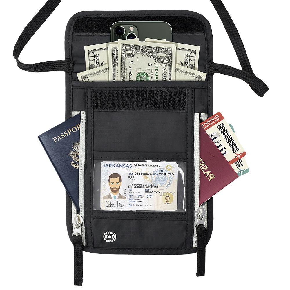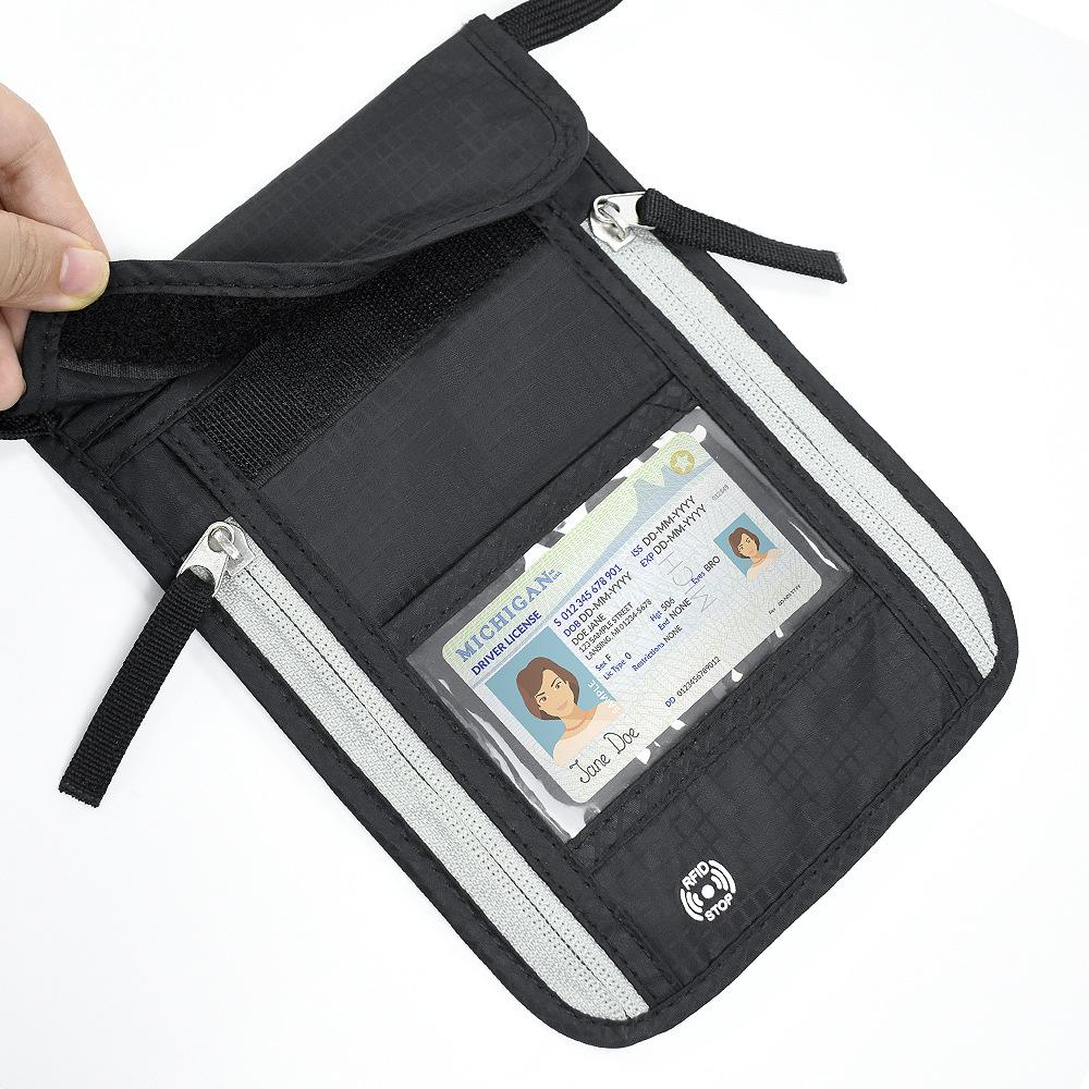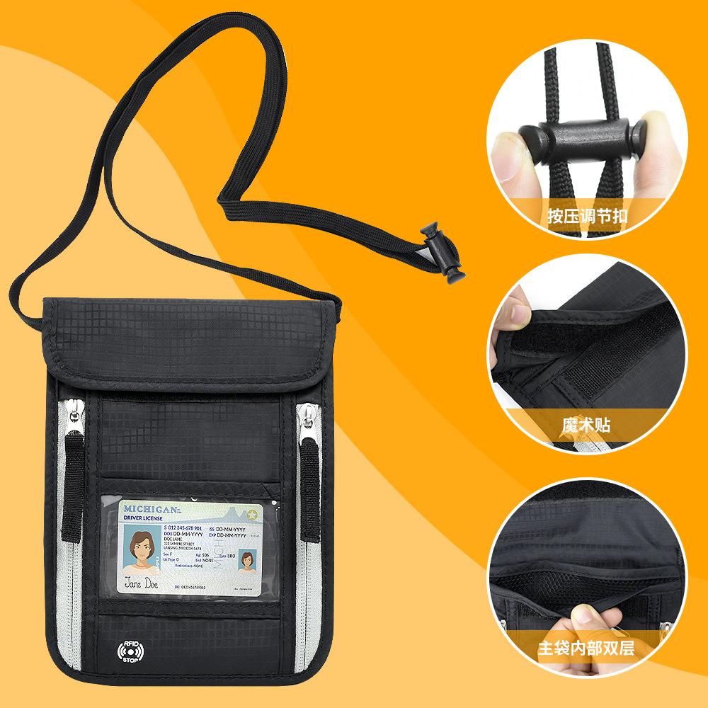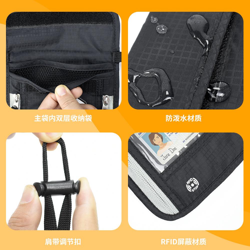 Bolsa de Documentos Cosméticos Personalizada de Fábrica para Viaje de Negocios Blindaje RFID Antirrobo Colgante de Cuello Bolsa para Documentos Bandolera Bolsa para Pasaporte