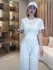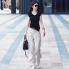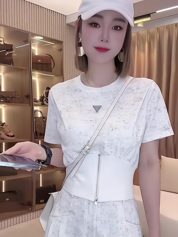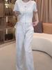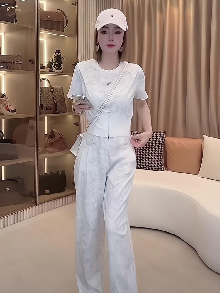 Conjunto de dos piezas formado por camiseta corta y pantalón ancho, estilo coreano, informal, con cremallera y dobladillo, para verano, 2024