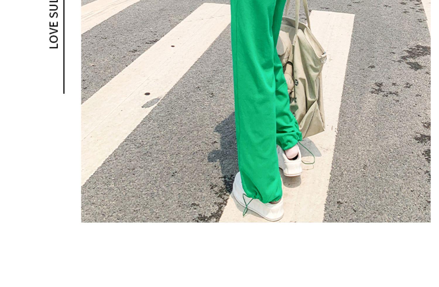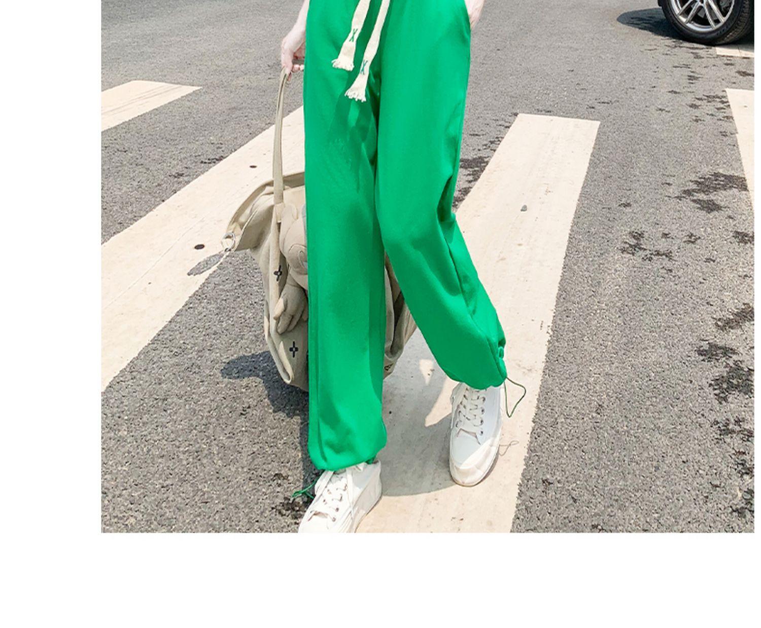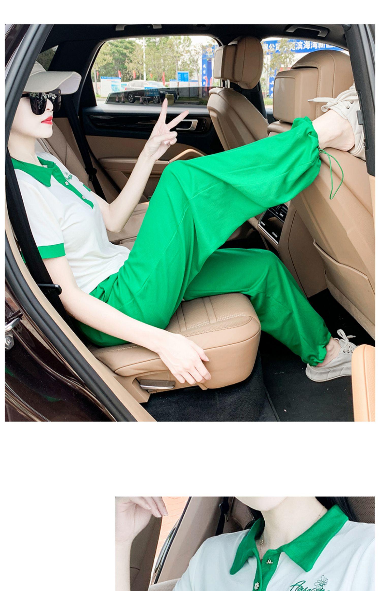 White top and green pants