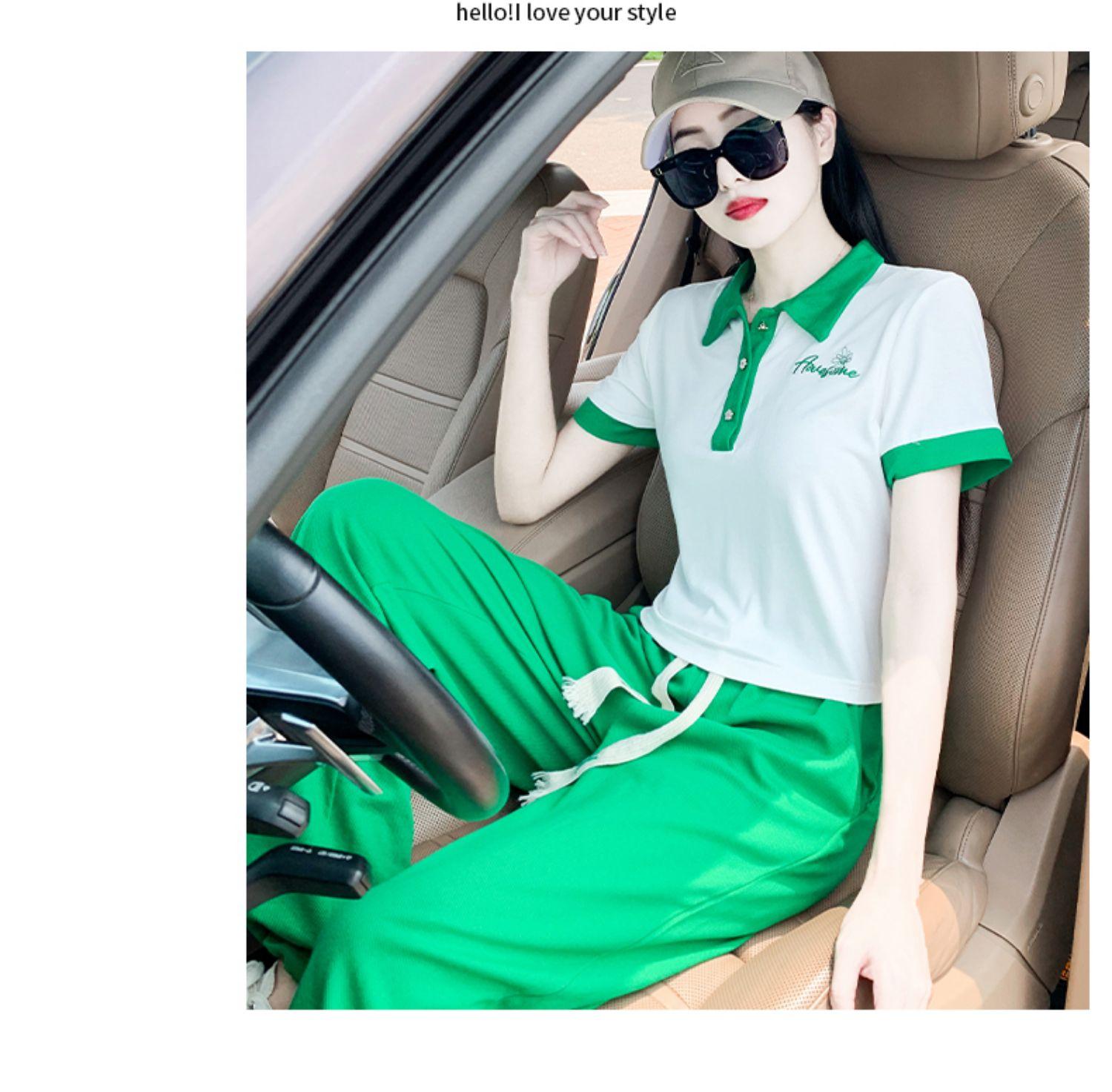 Traje Deportivo para Mujer Verano 2022 Nuevo Estilo Occidental Conjunto Completo con Abanico de Diosa Moda Casual Elegante Conjunto de Dos Piezas