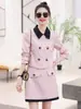 Traje Estilo Tweed 2025 Nuevo Otoño Estilo Retro Francés Falda Color Contraste Top con Lazo Conjunto de Dos Piezas
