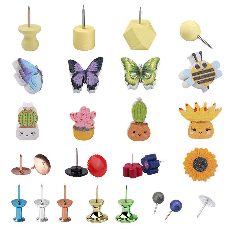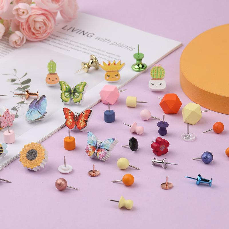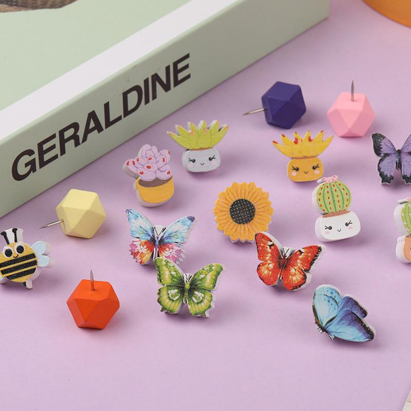 Alfiler de madera geométrico transfronterizo con forma de abeja, cactus y cabeza grande, para mensajes, tablero de corcho, disponible en stock.