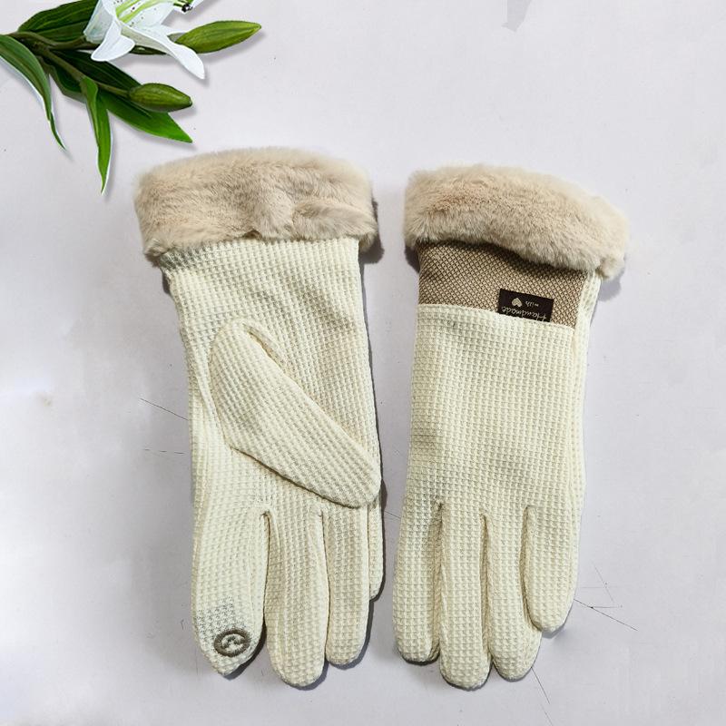Guantes de otoño e invierno para mujer, con pantalla táctil, cálidos, resistentes al frío, al por mayor, bonitos guantes de estilo coreano para montar a caballo y conducir, forrados de vellón.