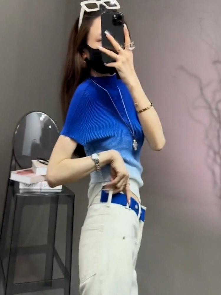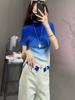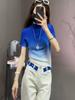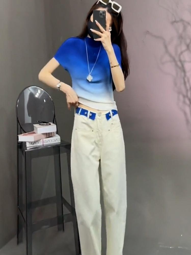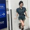 Conjunto de dos piezas de mezclilla azul ajustado de manga corta para uso diario, elegante y deportivo, de estilo moderno, para verano de 2023