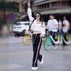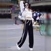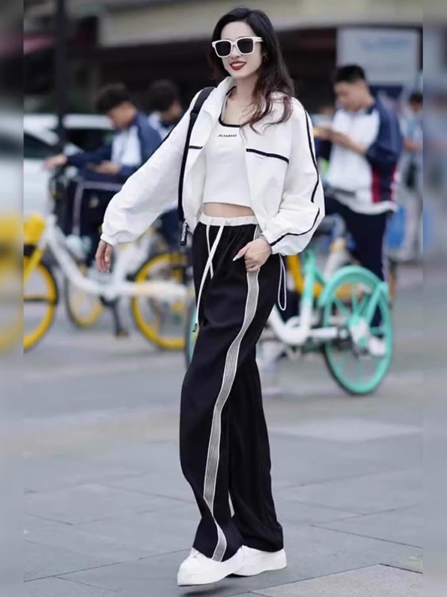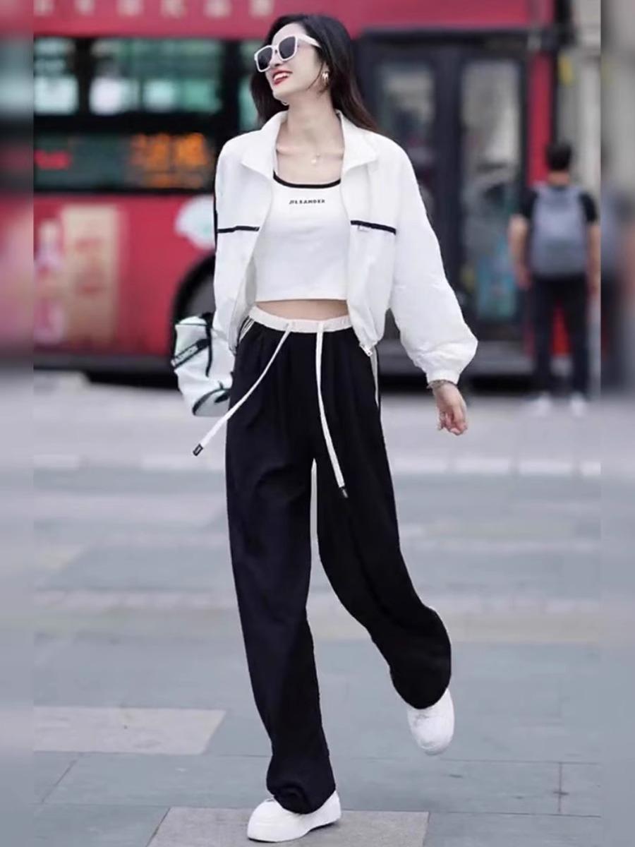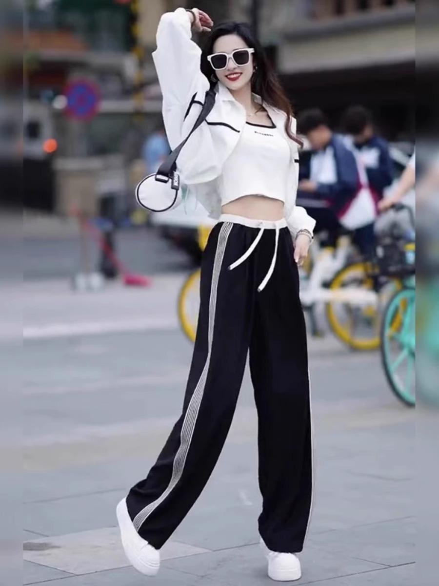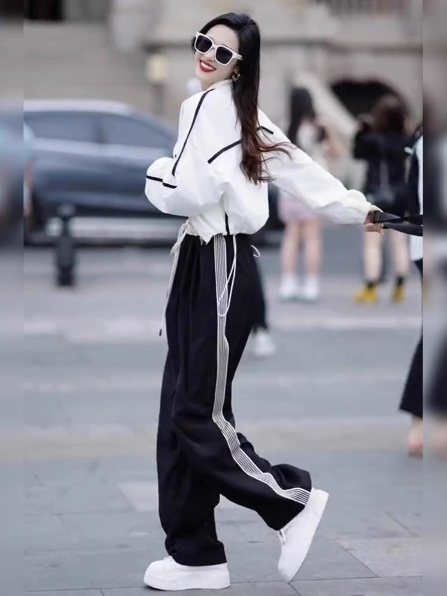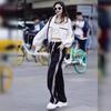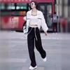 Conjunto deportivo pequeño para mujer, otoño 2024, nuevo cárdigan blanco con solapa y manga larga, dos piezas.