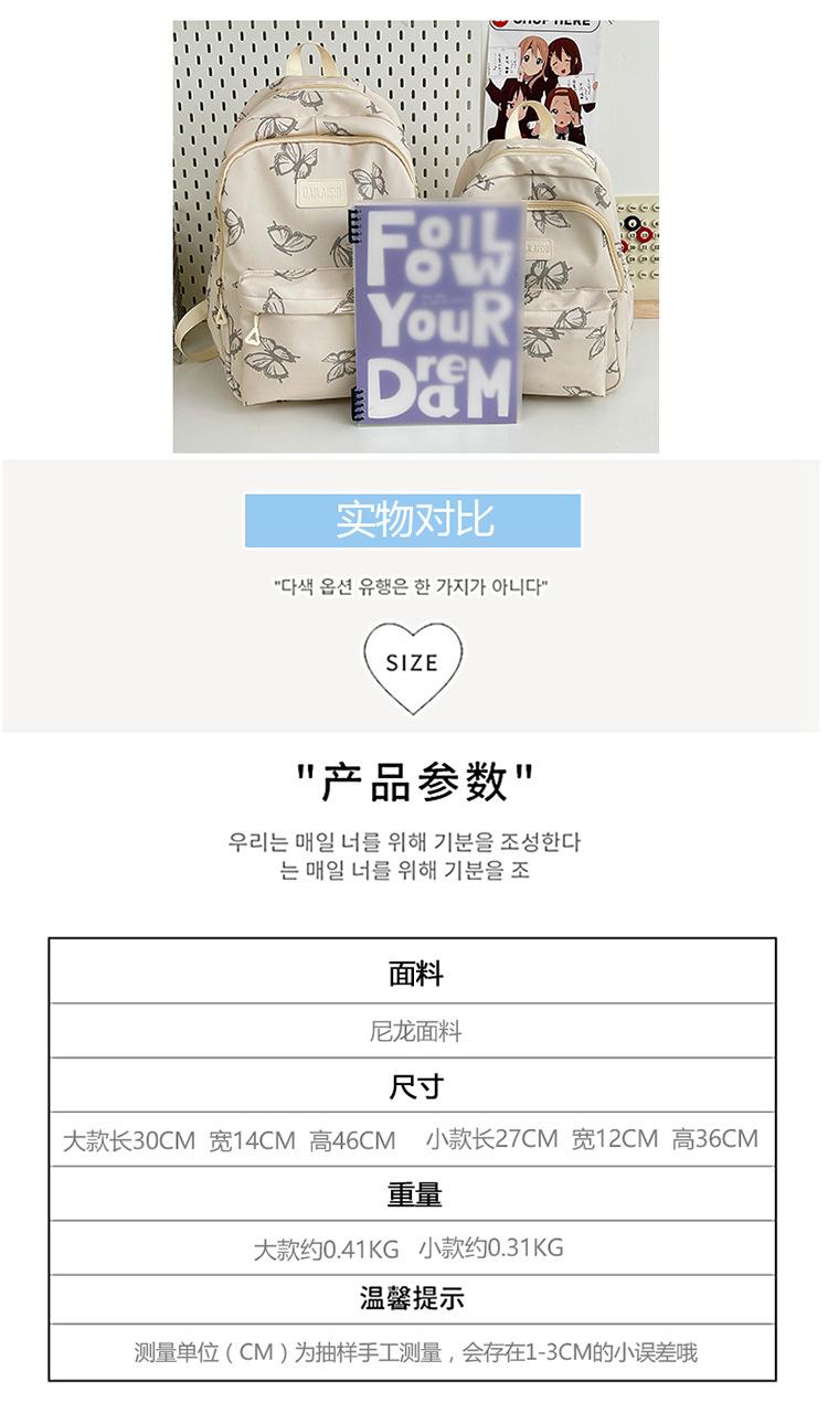 Mochila de mariposa estilo japonés Ins para estudiantes de secundaria, mochila escolar de gran capacidad, mochila ligera de viaje