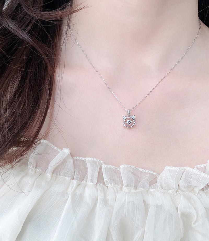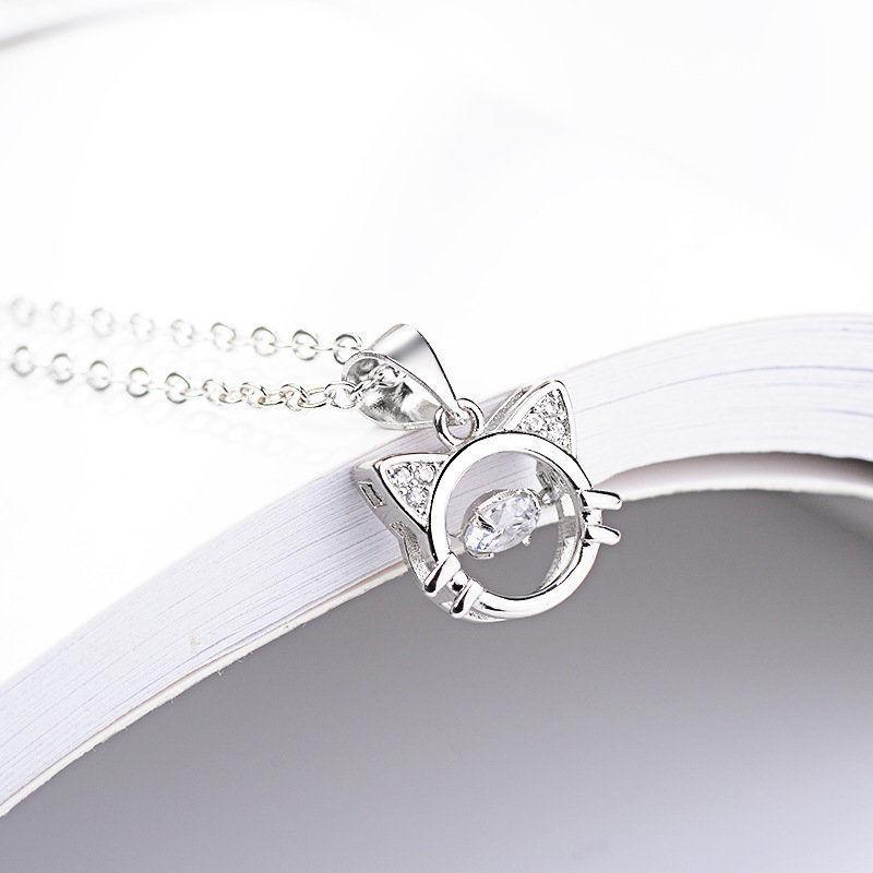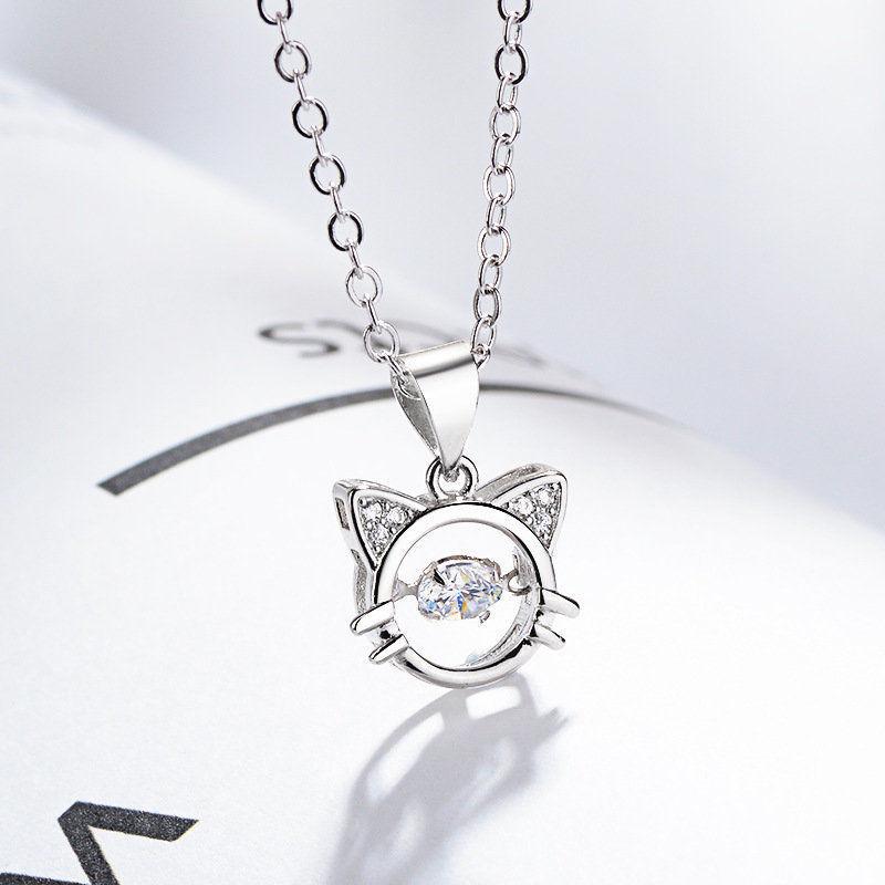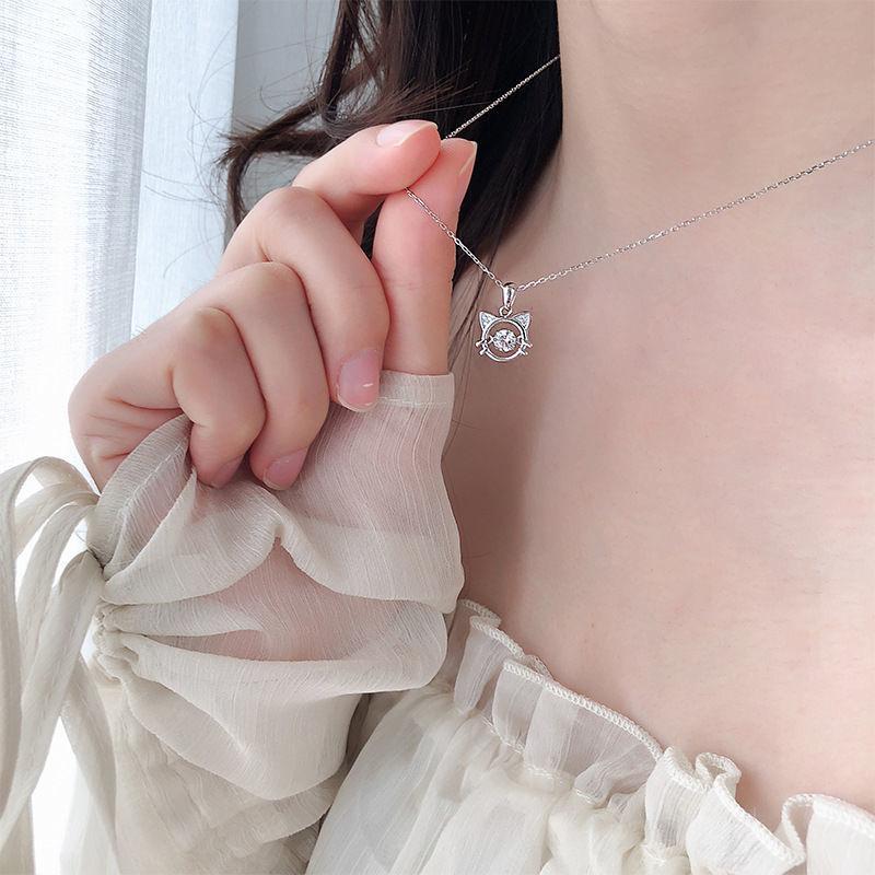 Collar de acero de titanio con diseño de gato inteligente para mujer, cadena de clavícula de estilo coreano, pequeño, fresco, con personalidad de estudiante, colgante de gatito Mori, accesorios