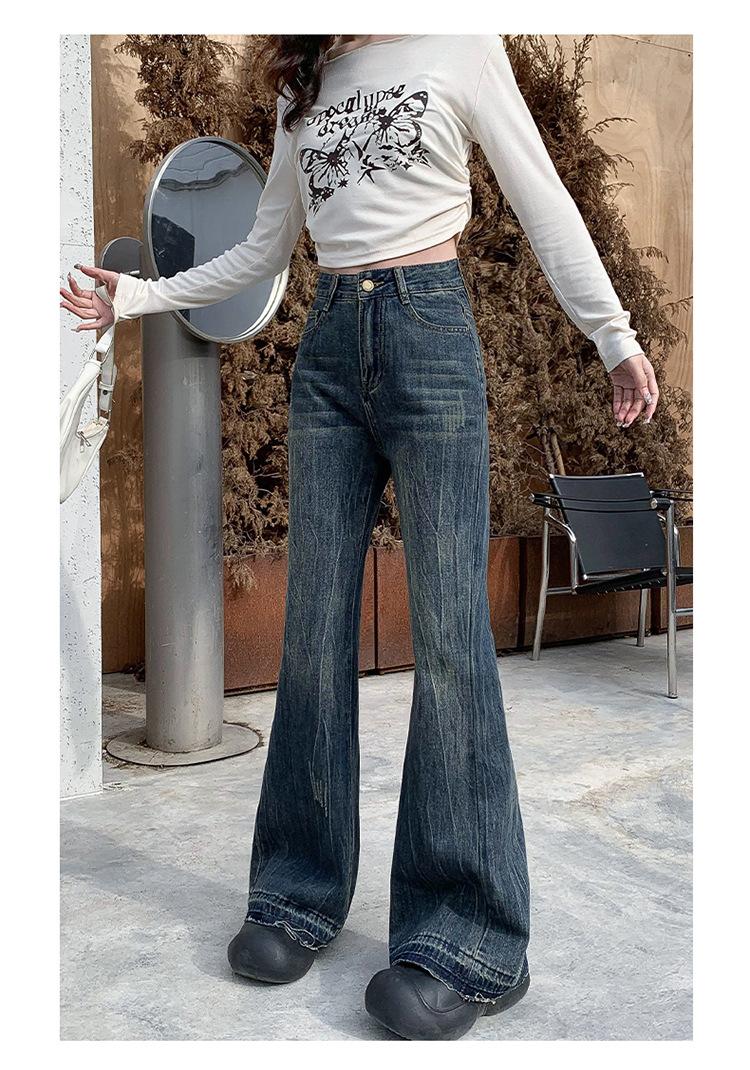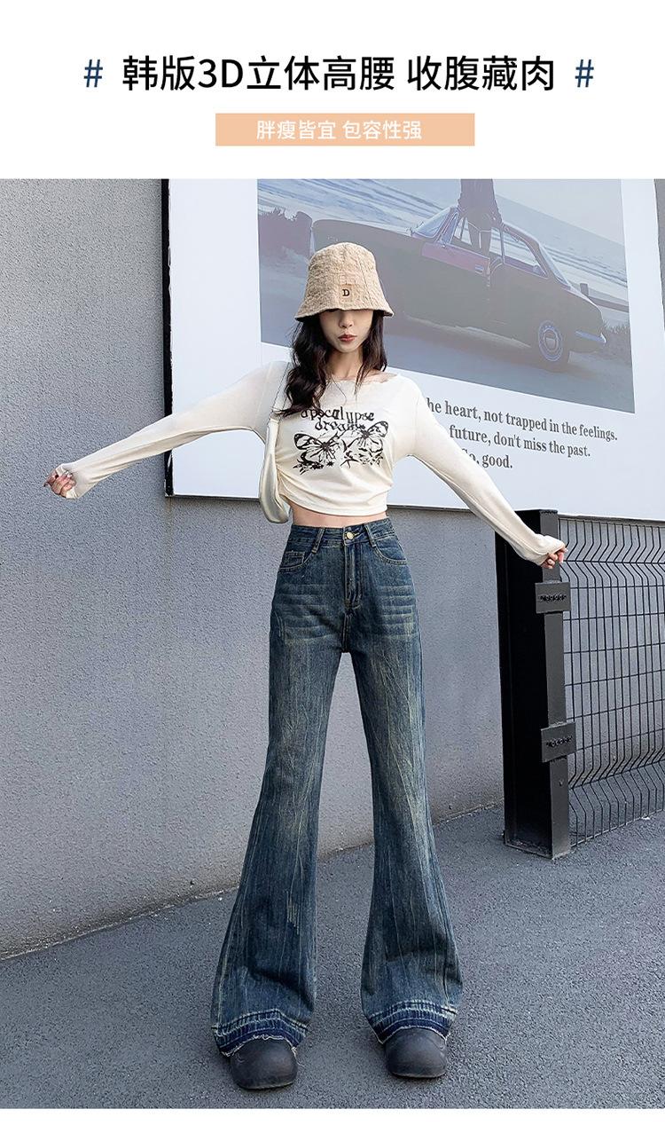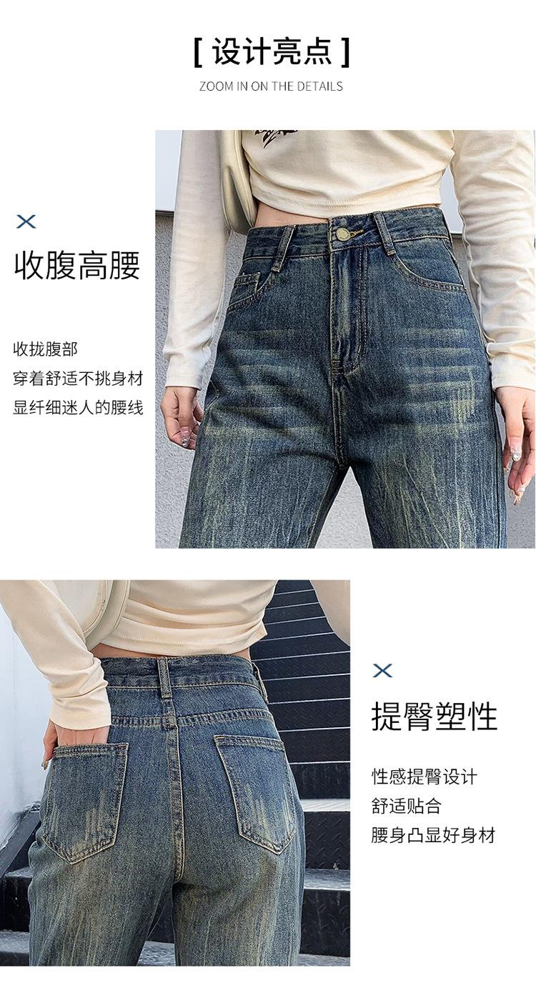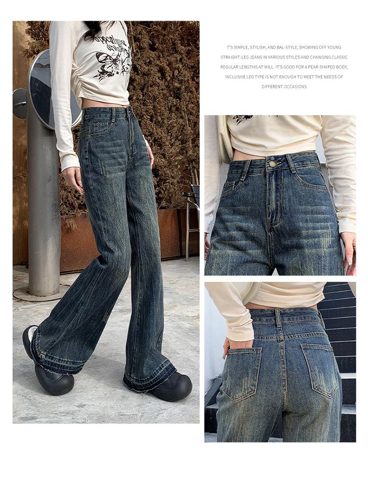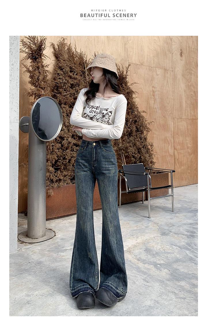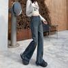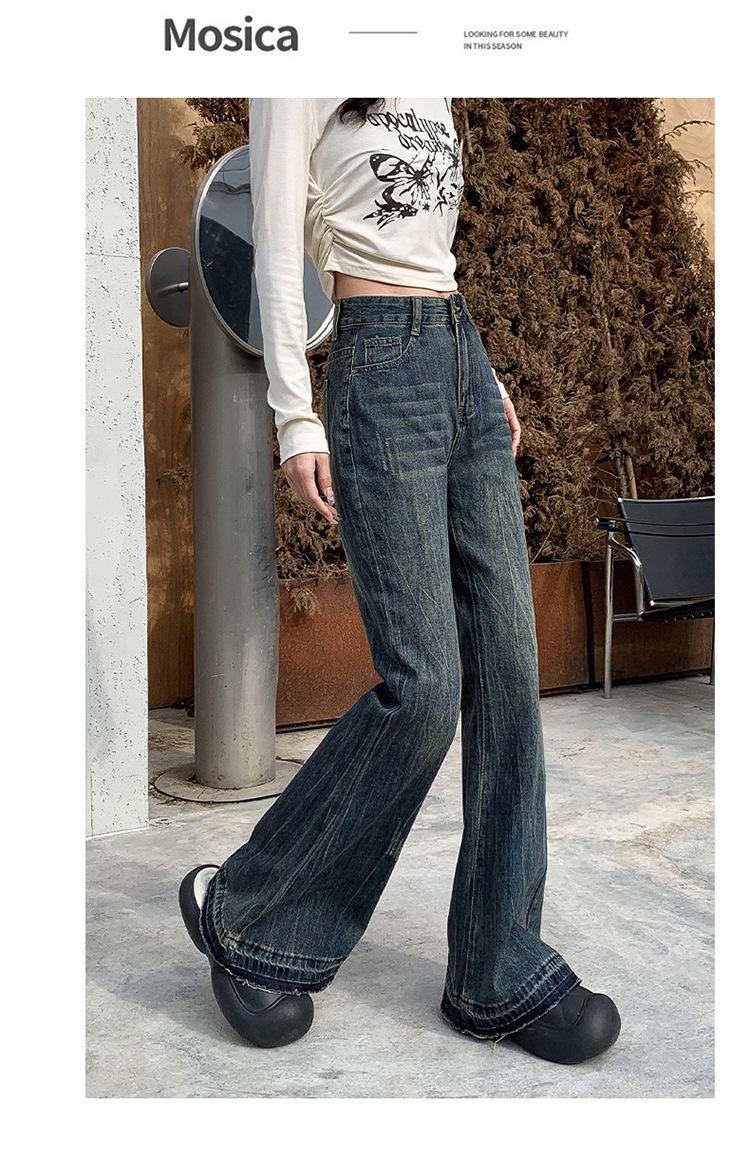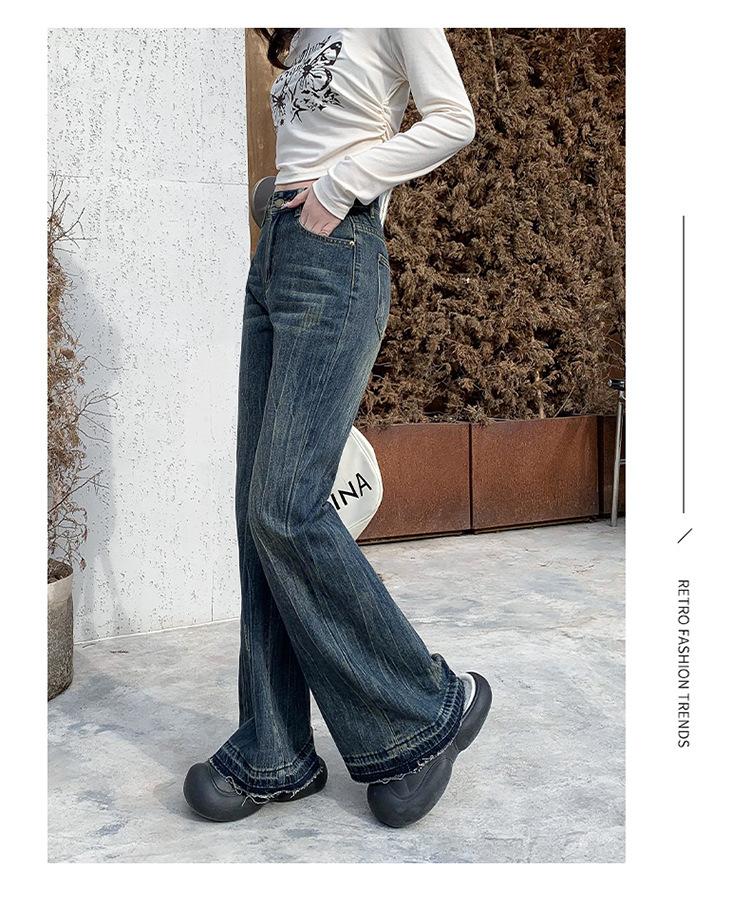 Pantalones vaqueros de estilo americano con borde de pelo retro Micro-Lar para mujer, primavera 2024, nuevos pantalones adelgazantes de cintura alta
