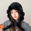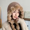 Nuevo gorro de peluche de conejo con orejas grandes para mujer, otoño e invierno, además de terciopelo grueso y cálido con bola de pelo, gorro Lei Feng para ciclismo, gorro con protección para los oídos contra el frío. |