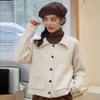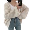 2024 Nuevo Estilo Otoño e Invierno Estilo Holgazán Cuello en V Versátil Suelto Casual Color Puro Cárdigan Tejido Corto Suéter Chaqueta para Mujer