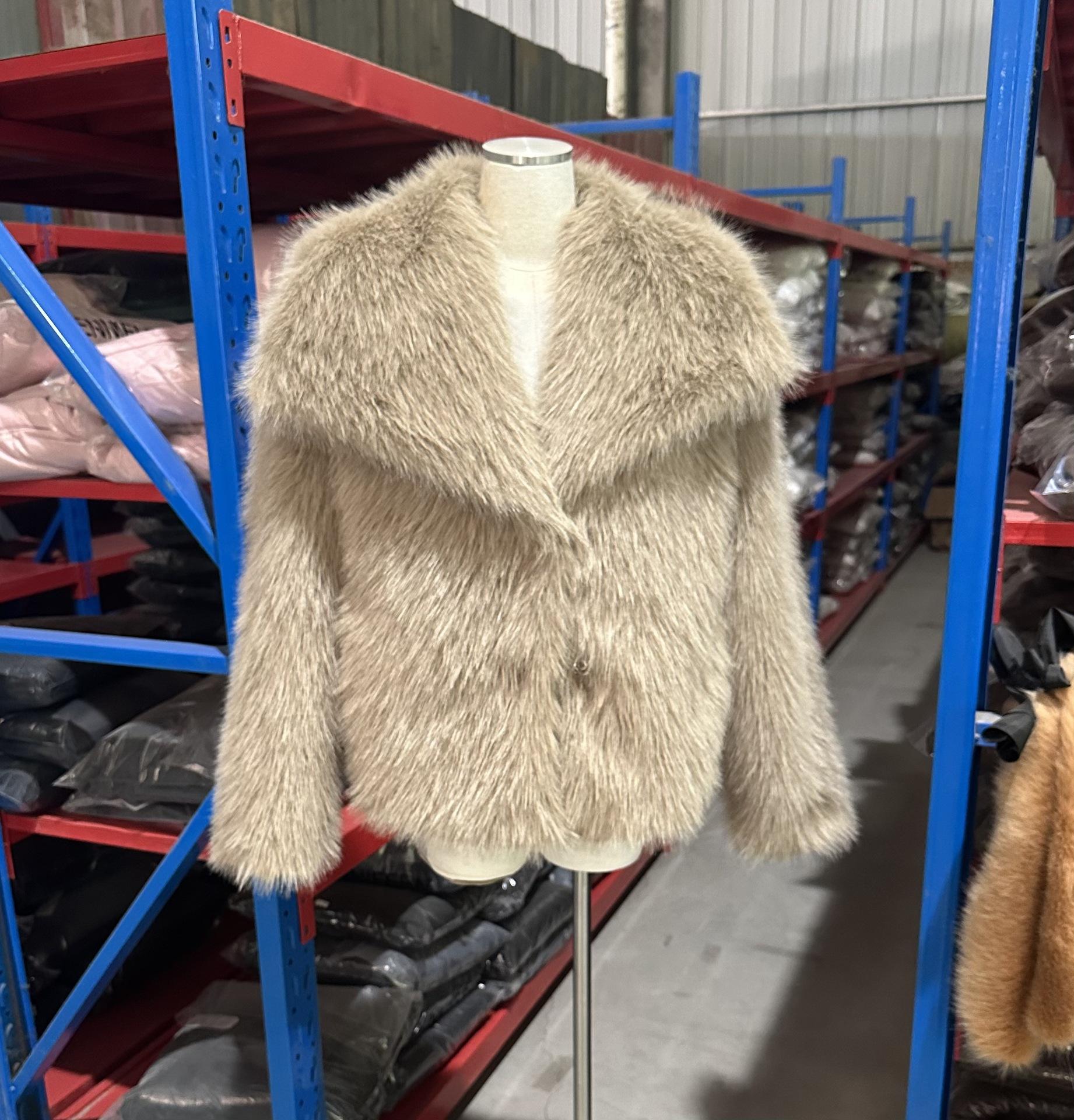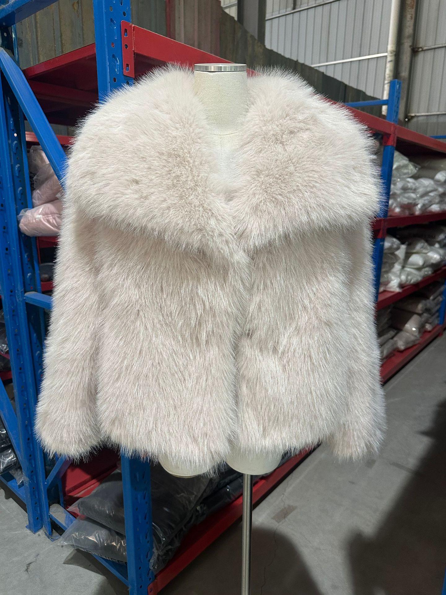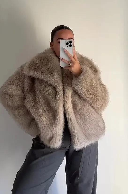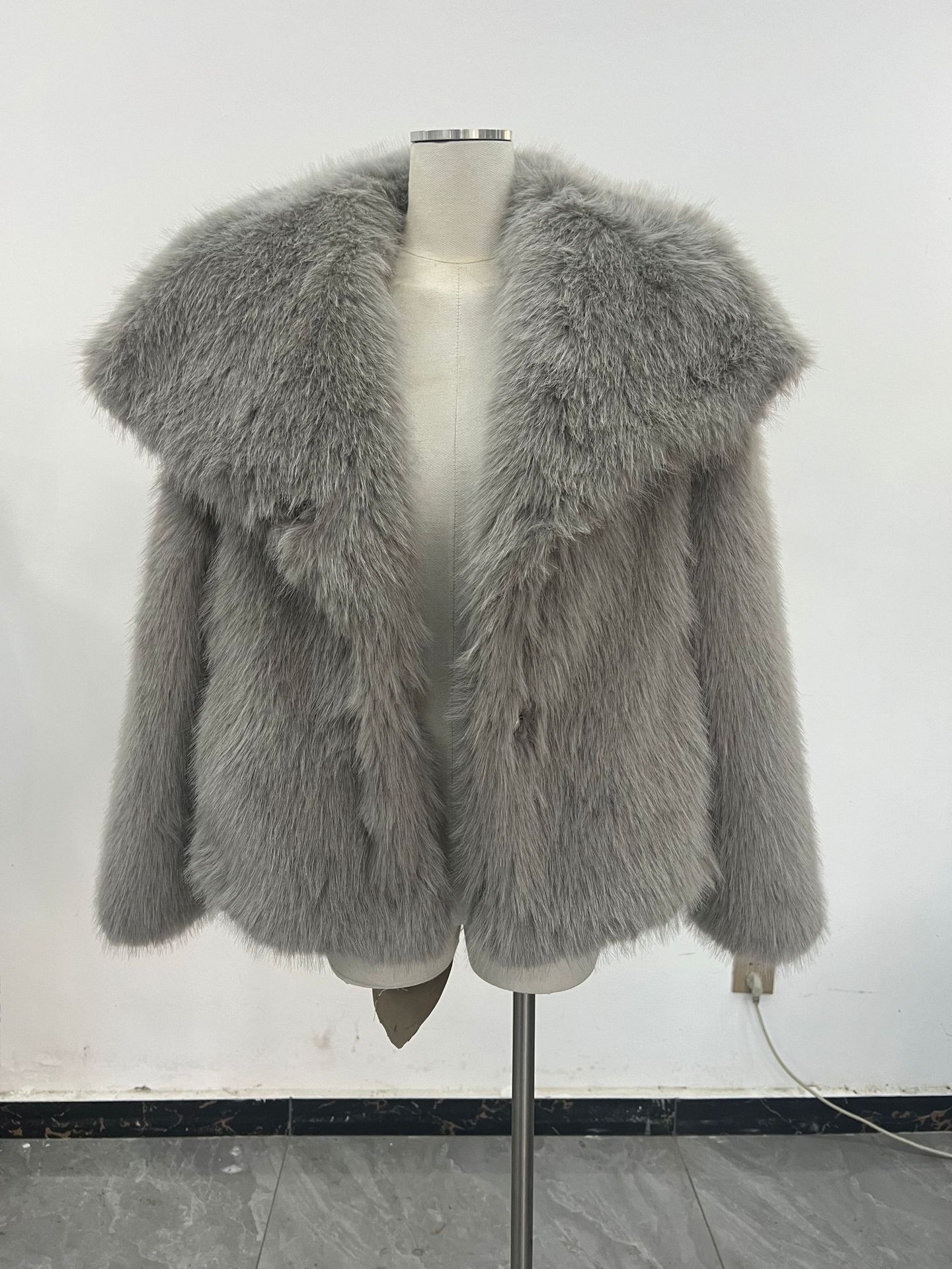 Abrigo Corto Casual de Piel de Zorro de Estilo Europeo y Americano Transfronterizo 2025 Otoño e Invierno Chaqueta de Piel para Mujer