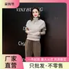 Conjunto de dos piezas formado por jersey y pantalón corto, informal, de moda de otoño e invierno, con cuello semiabierto y sudadera gruesa para mujer.