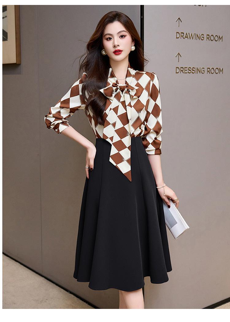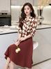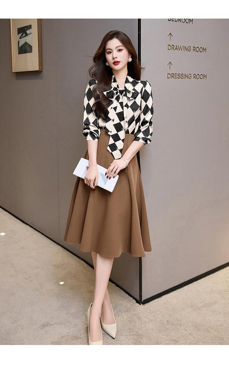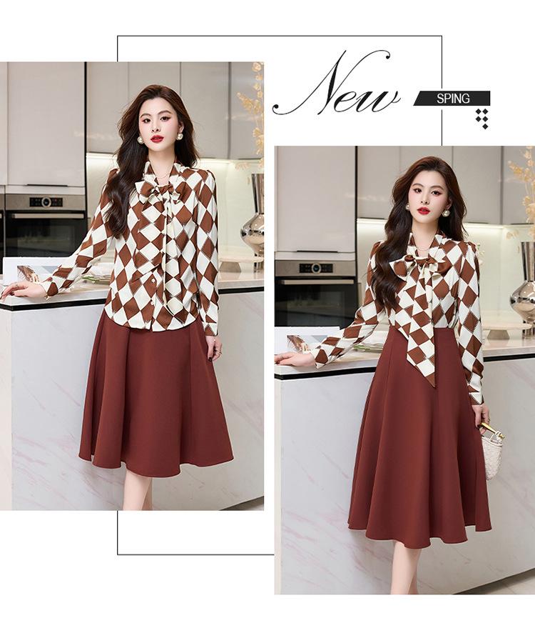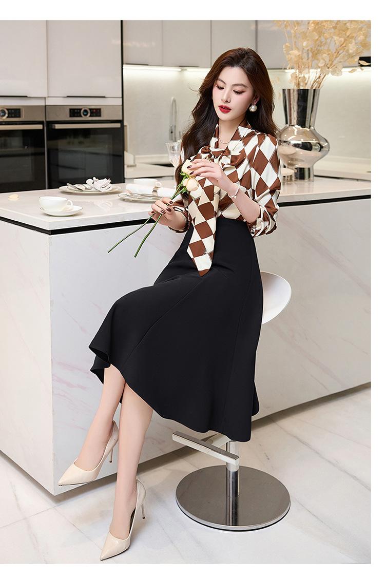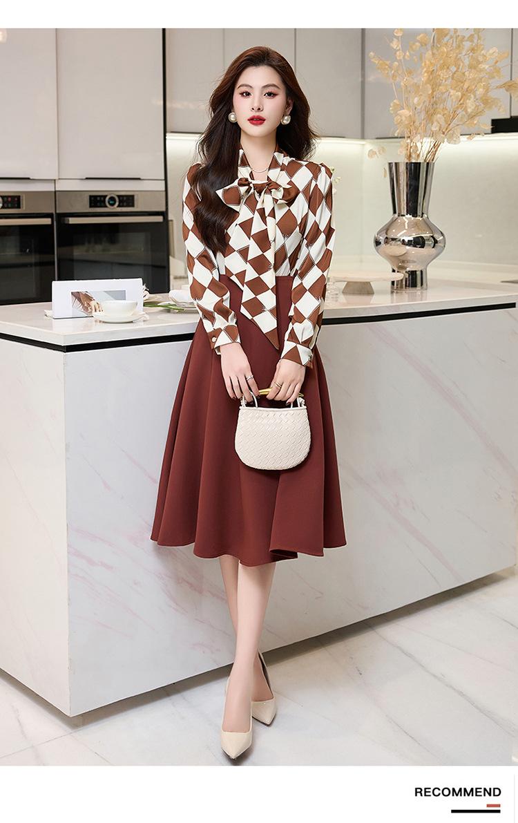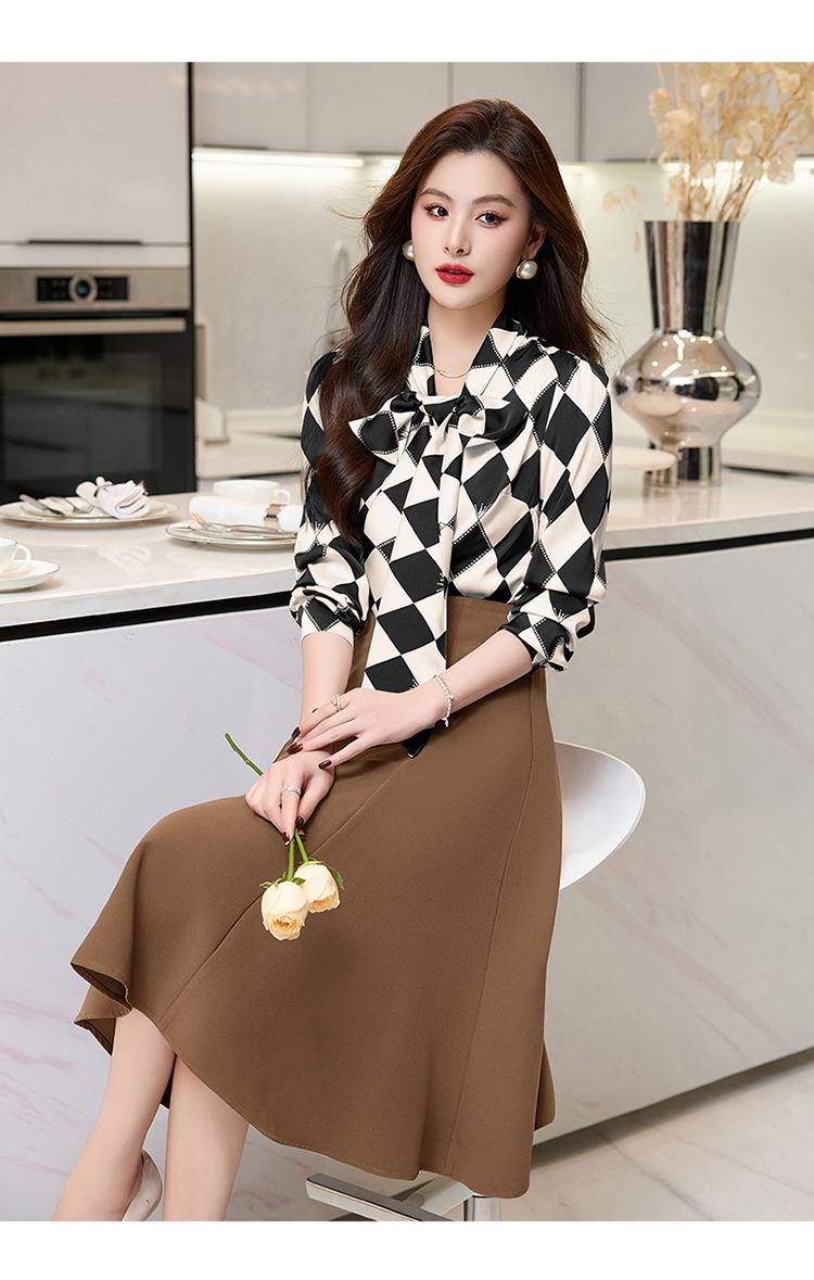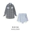 Otoño 2025 Nuevo Elegante y a la Moda Commuter Trendy Versátil Conjunto de Dos Piezas de Camisa a Cuadros y Falda de Cintura Alta