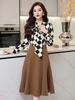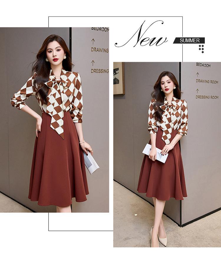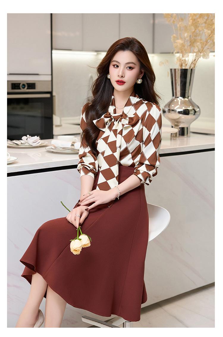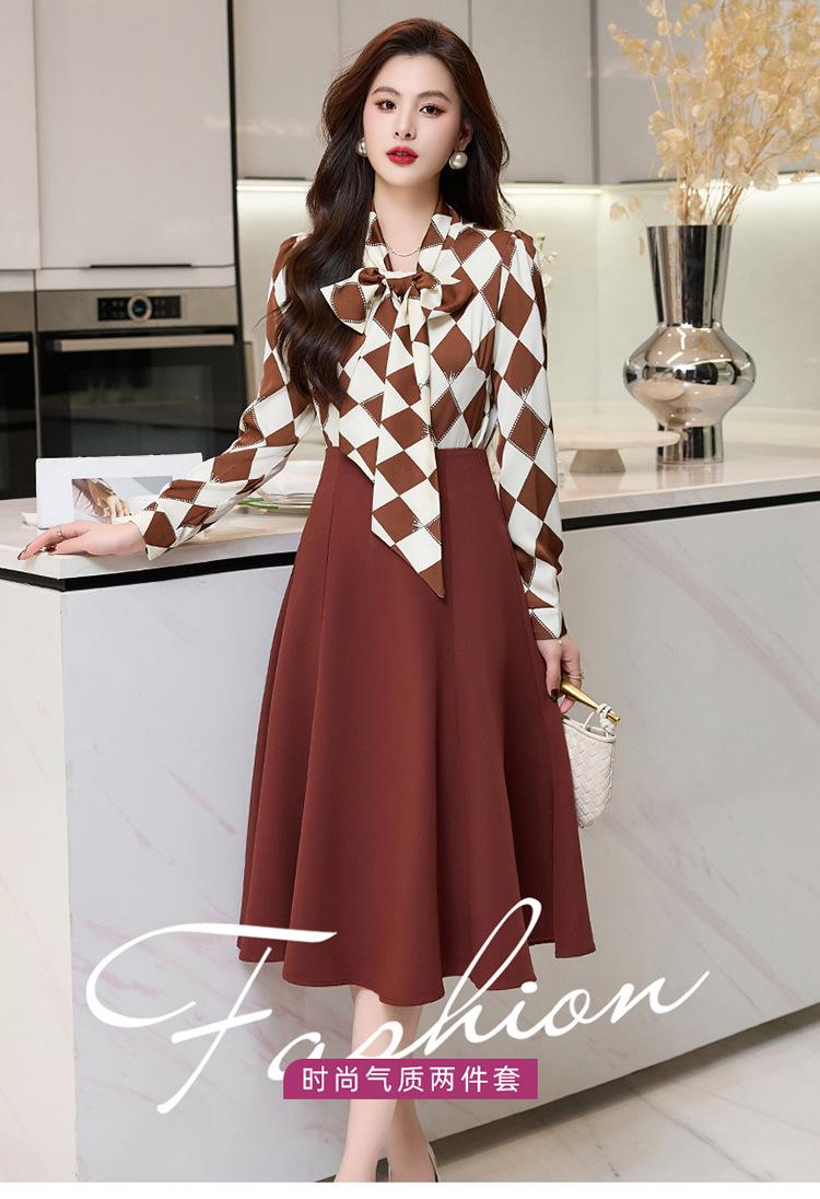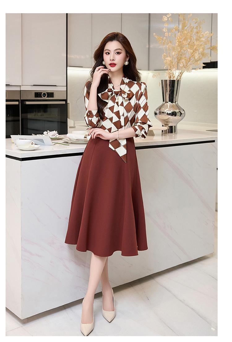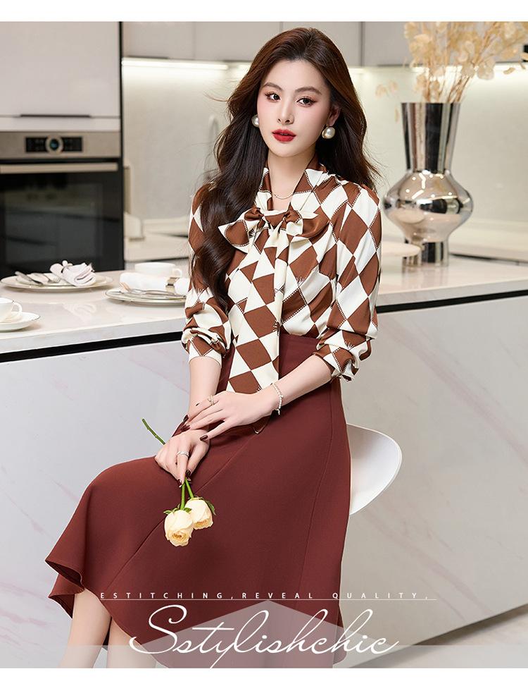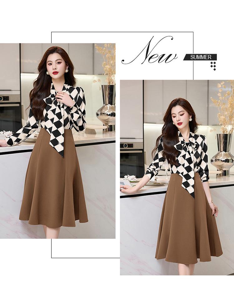 Otoño 2025 Nuevo Elegante y a la Moda Commuter Trendy Versátil Conjunto de Dos Piezas de Camisa a Cuadros y Falda de Cintura Alta