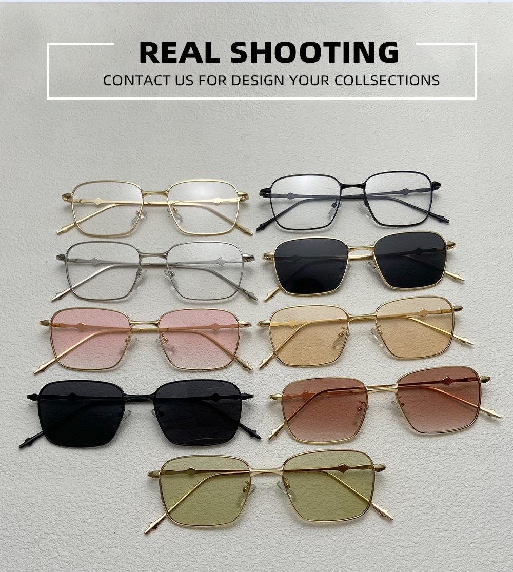 Lentes de Sol Metálicos de Marco Cuadrado Pequeño para Hombres y Mujeres 2025 Nuevo Estilo Retro Coreano Anti-Uv Moda Lentes de Sol Europeos y Americanos