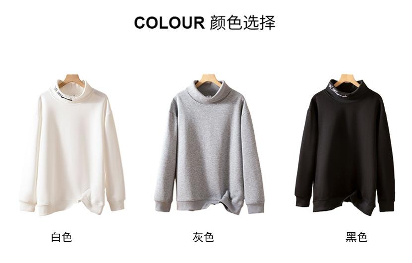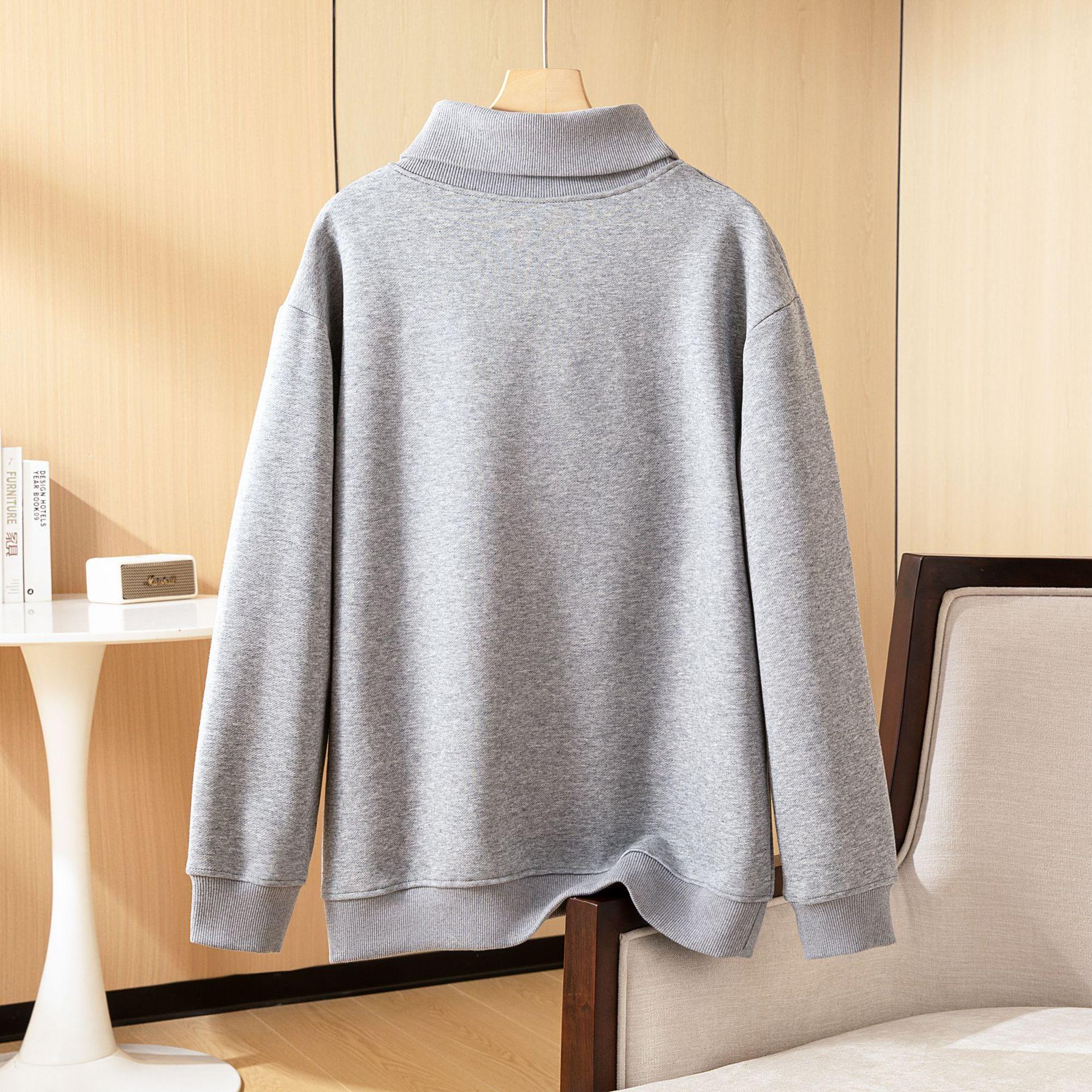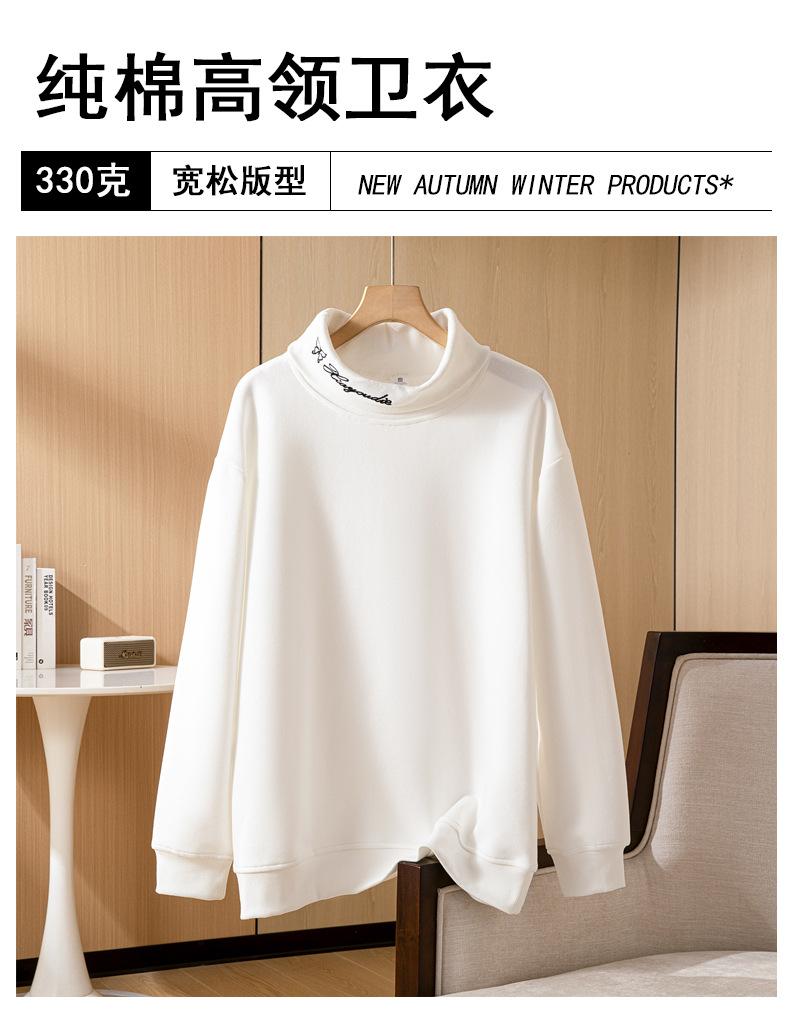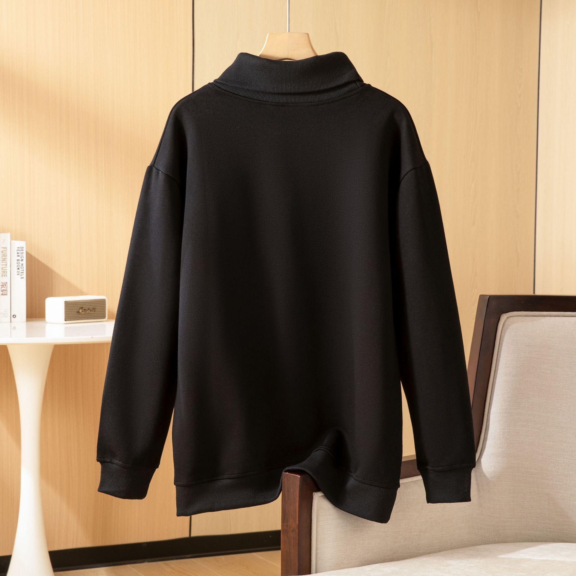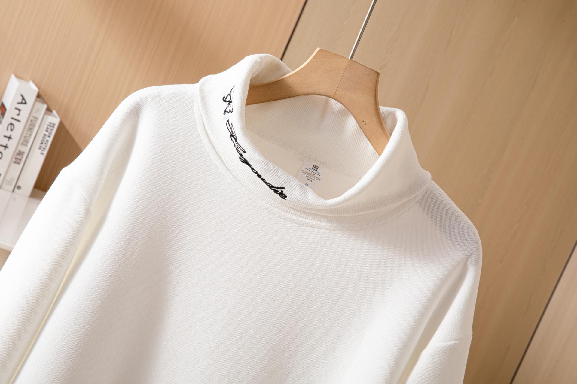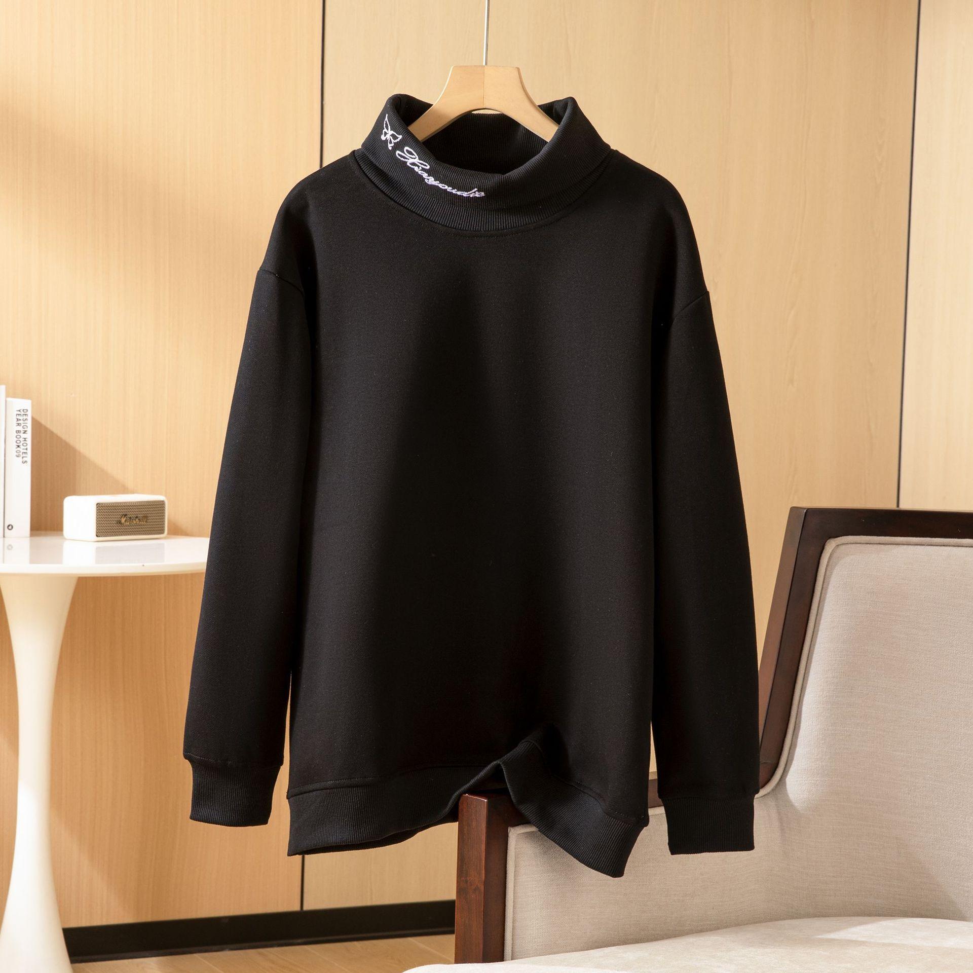 Sudadera de Algodón de Manga Larga Versátil Holgada Estilo Coreano para Mujer Color Puro Cuello Alto Primavera y Otoño Top Elegante Bordado