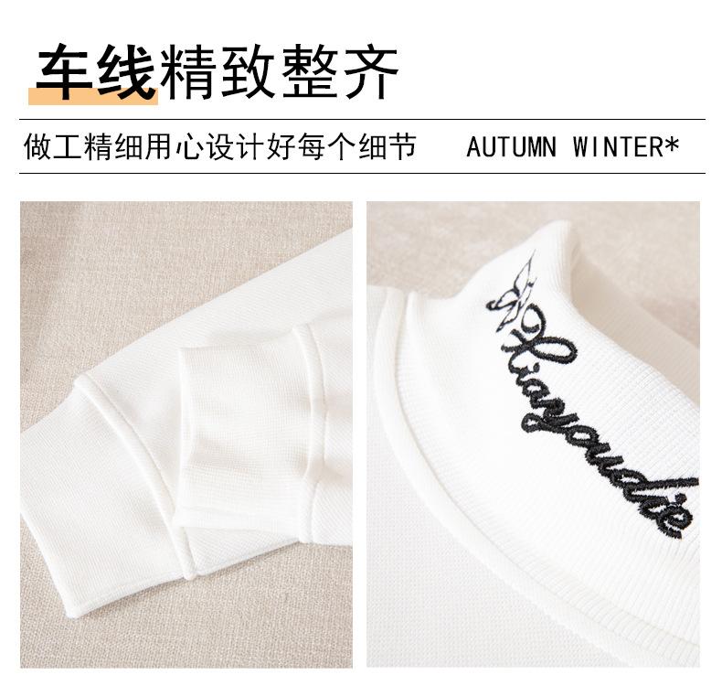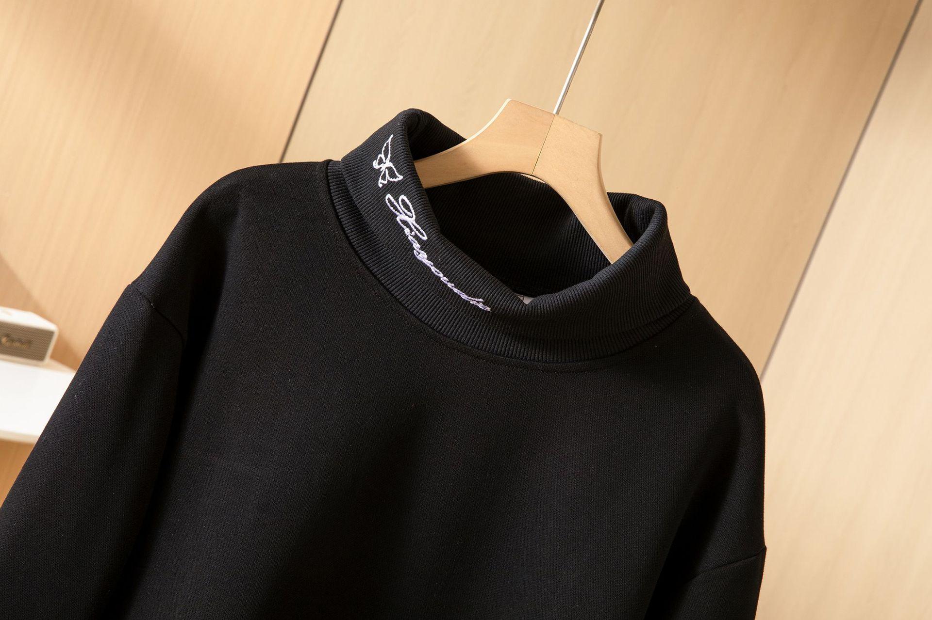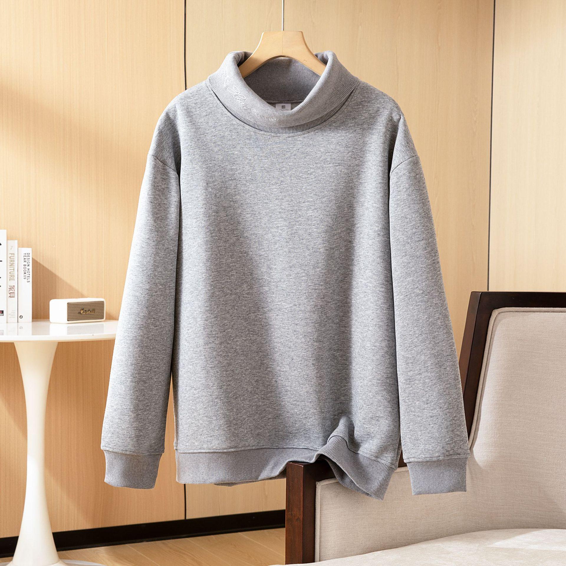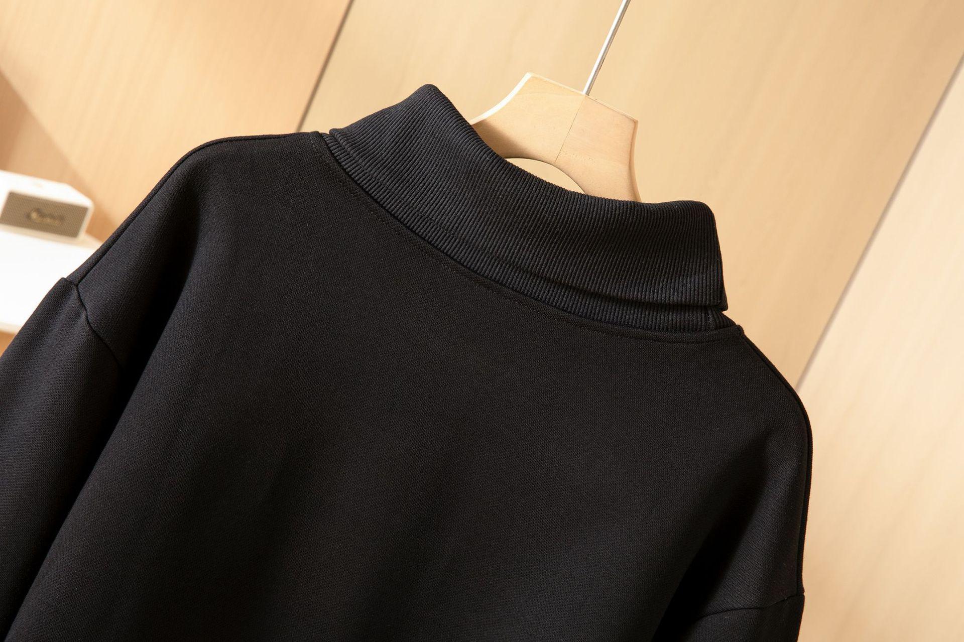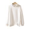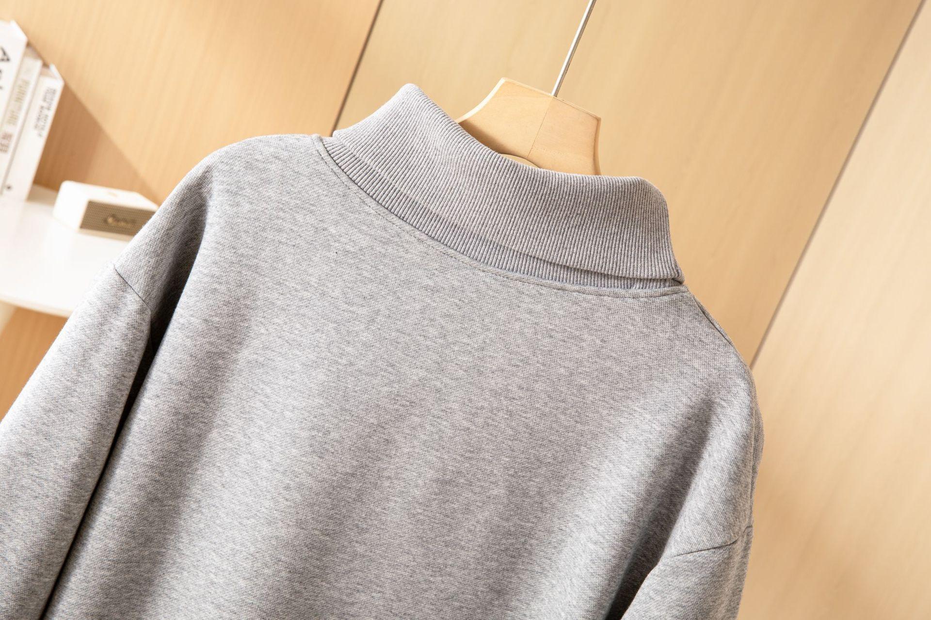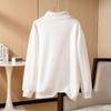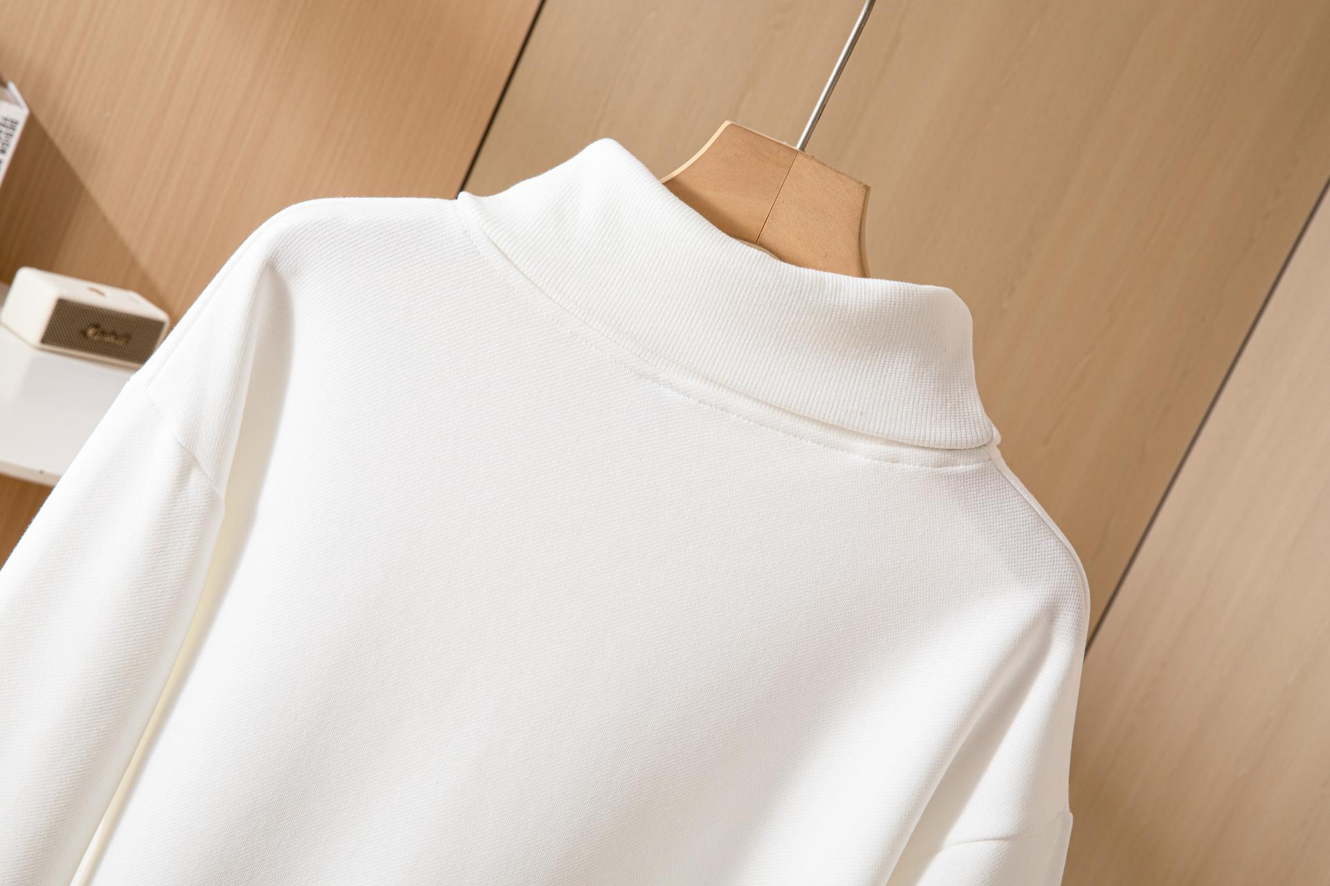 Sudadera de Algodón de Manga Larga Versátil Holgada Estilo Coreano para Mujer Color Puro Cuello Alto Primavera y Otoño Top Elegante Bordado