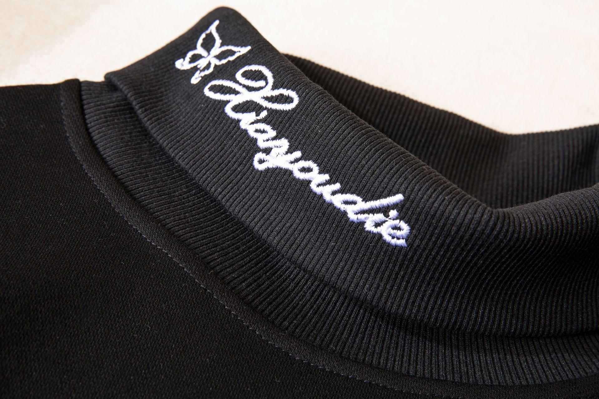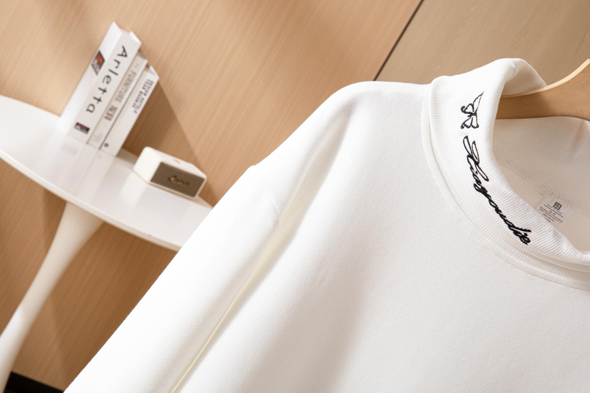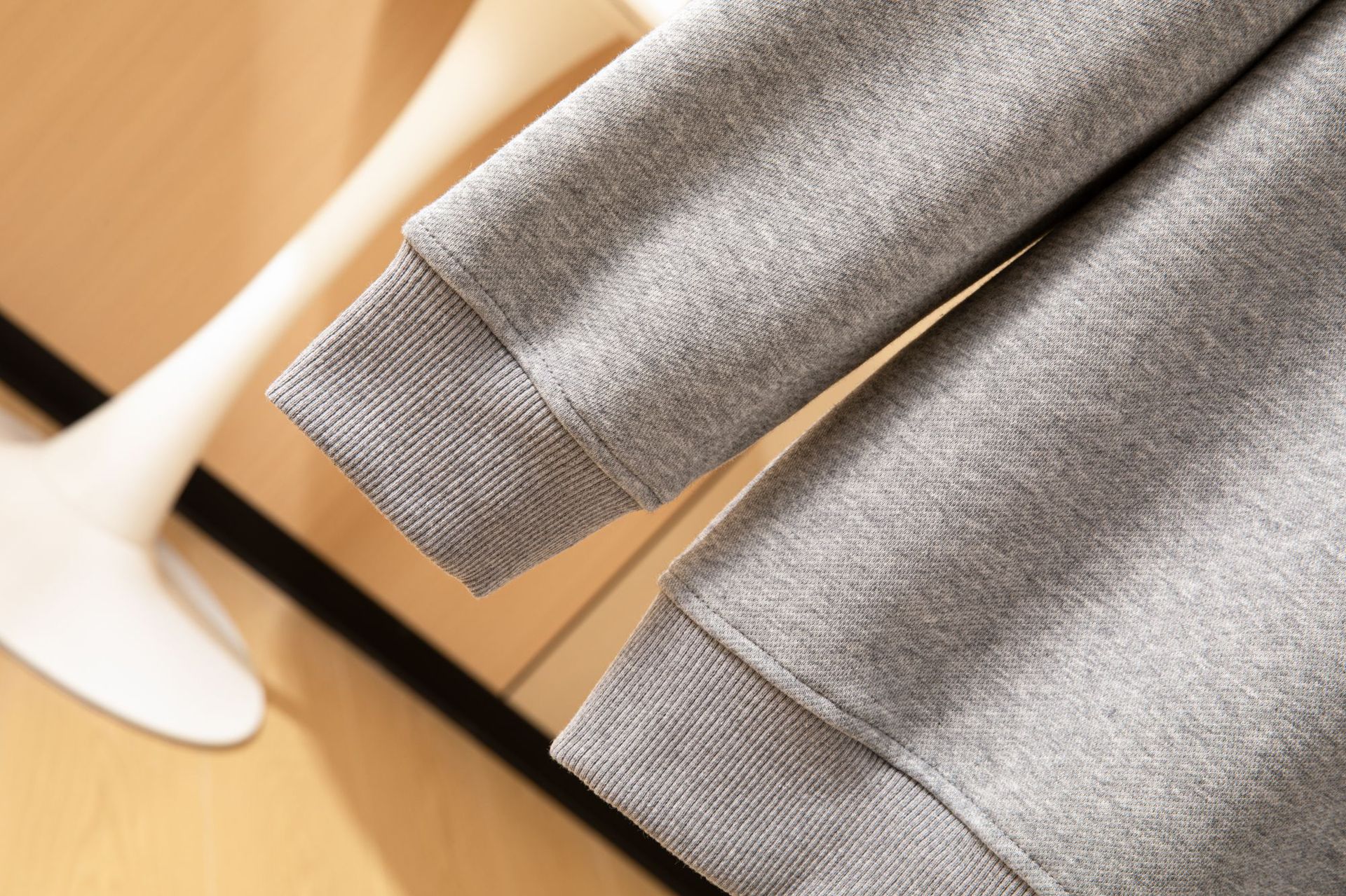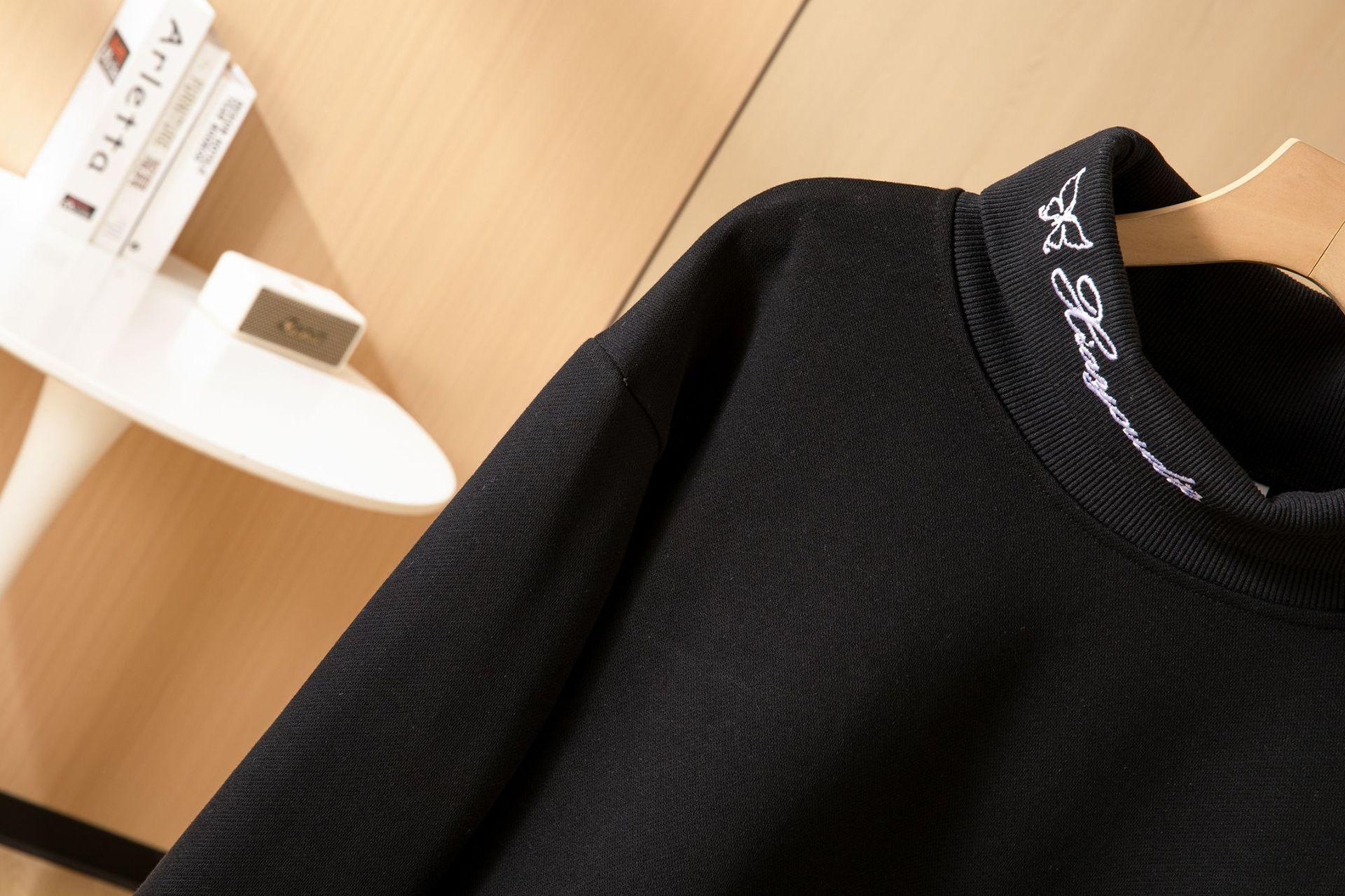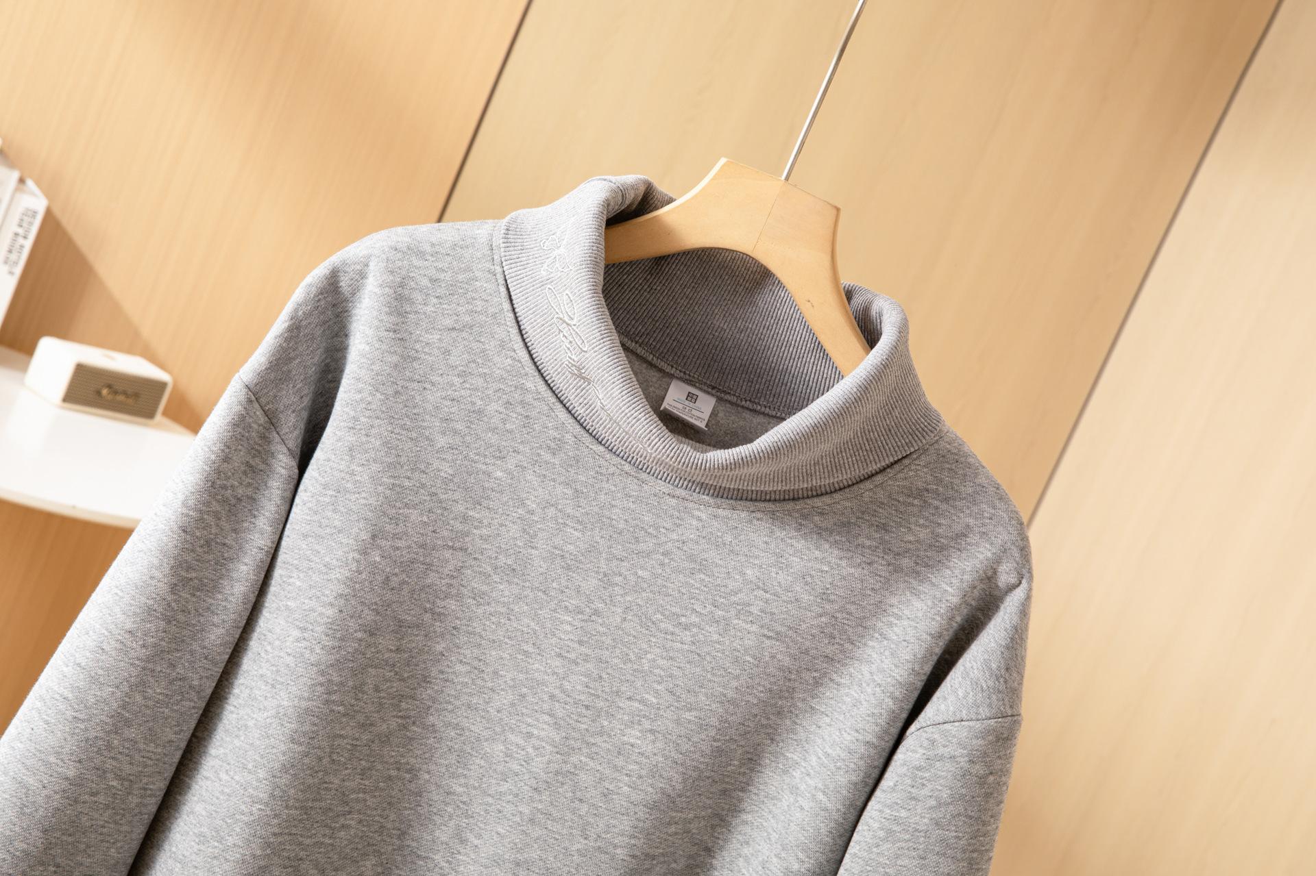 Sudadera de Algodón de Manga Larga Versátil Holgada Estilo Coreano para Mujer Color Puro Cuello Alto Primavera y Otoño Top Elegante Bordado