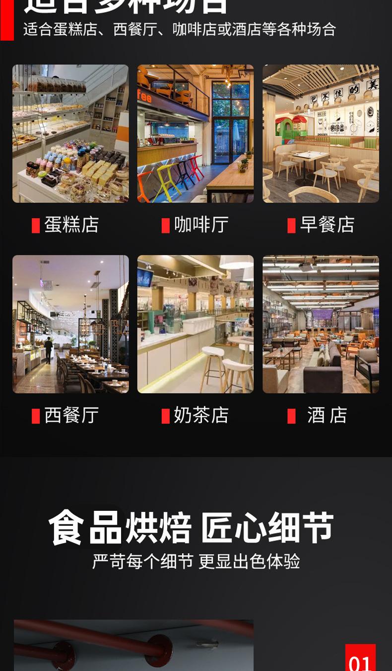6. La puerta del horno semiautomático con resorte de tensión ofrece flexibilidad de apertura, cierre hermético y durabilidad. El termostato de presión puede funcionar con voltajes muy bajos y el rendimiento eléctrico no se ve afectado por fluctuaciones de voltaje.