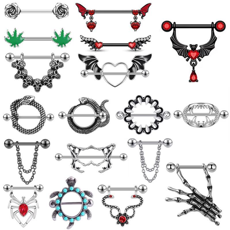 E-Commerce Transfronterizo Barra Recta Anillo para Pezón Venta al por Mayor Personalizado Chica Sexy Calavera en Forma de Serpiente Murciélago Piercing Uña para Pezón Joyería