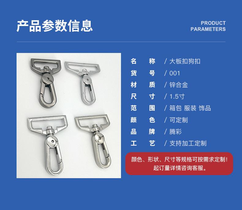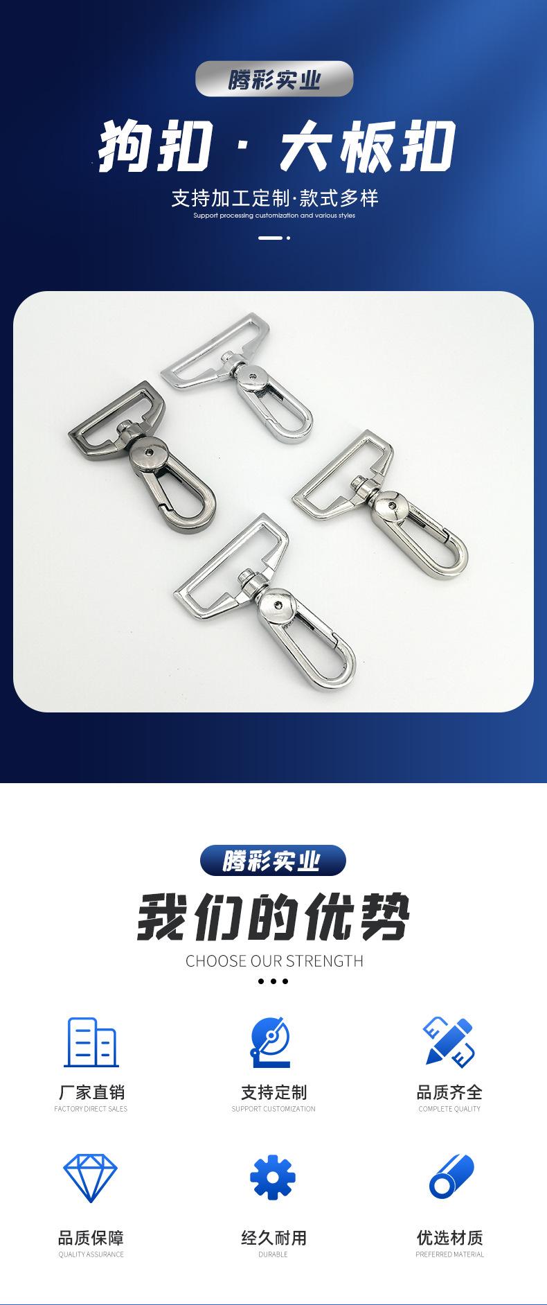 Llavero de aleación de zinc, hebilla de placa grande, hebilla de gancho, hebilla de cordón de mano, hebilla de hombro, hebilla de metal para perro, accesorios de hardware